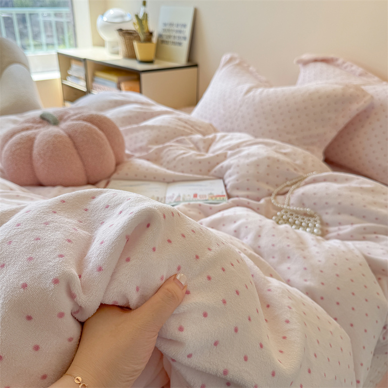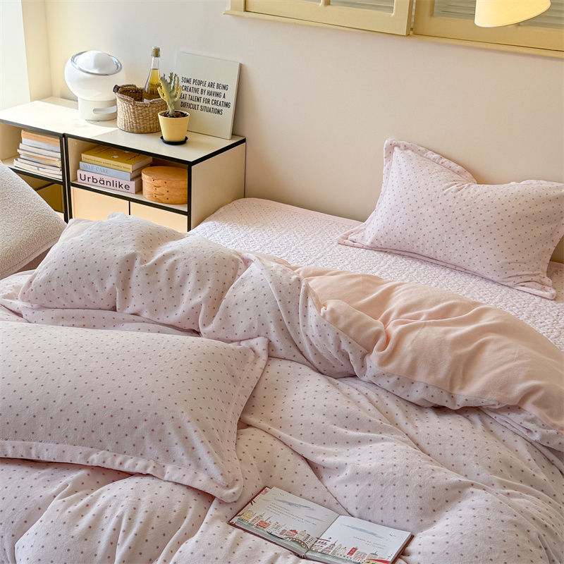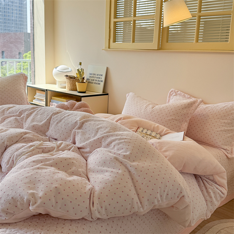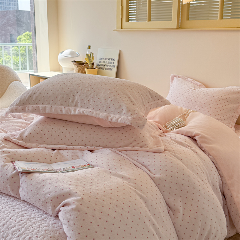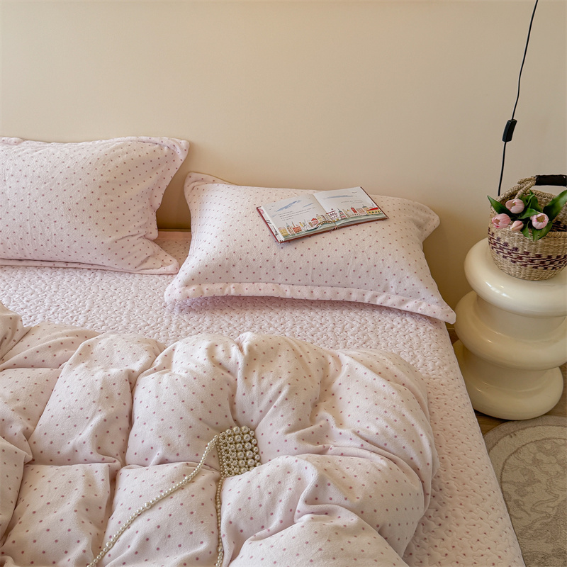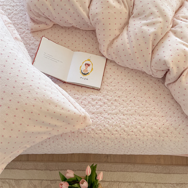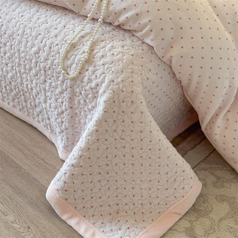 商品名称:潘朵拉家纺 2025新款牛奶绒床盖款四件套 粉星漫