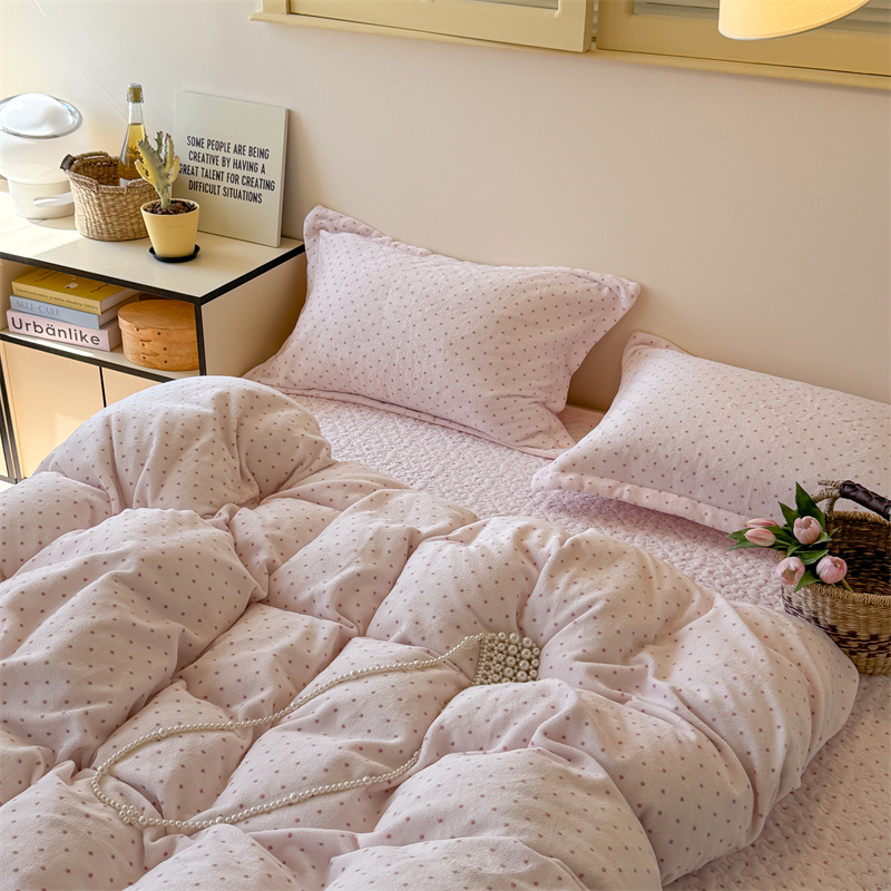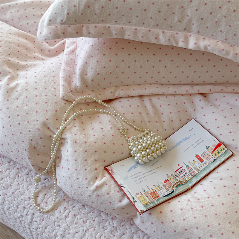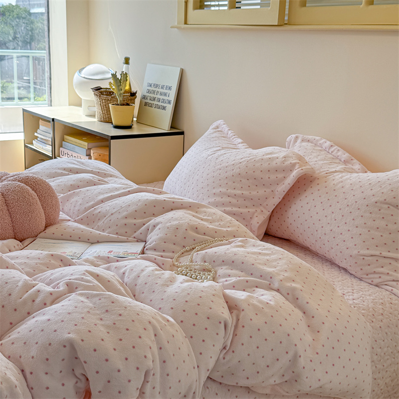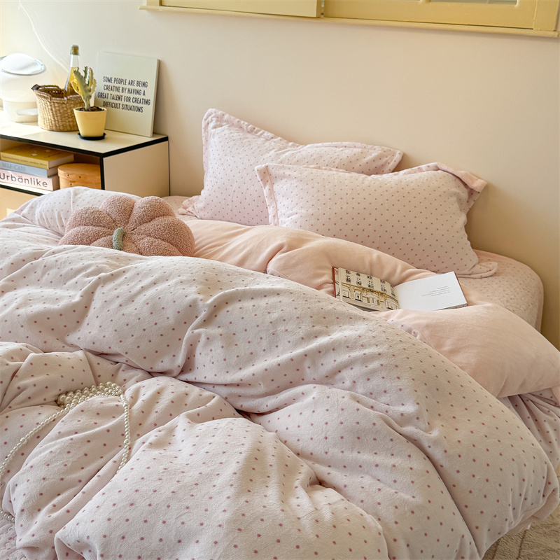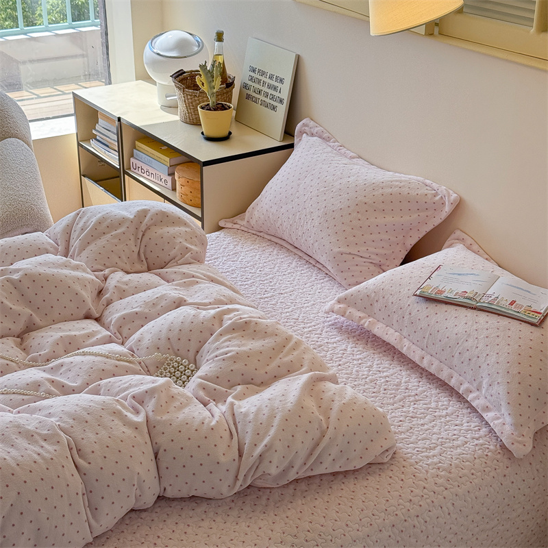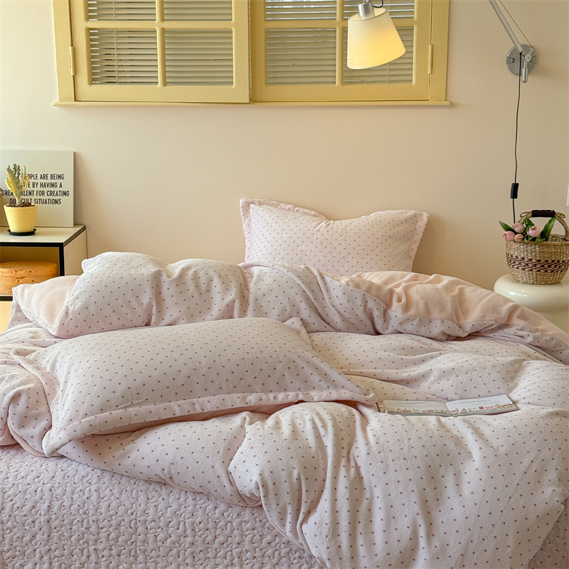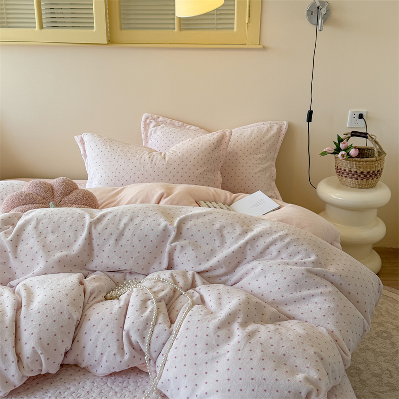 商品名称:潘朵拉家纺 2025新款牛奶绒床盖款四件套 粉星漫