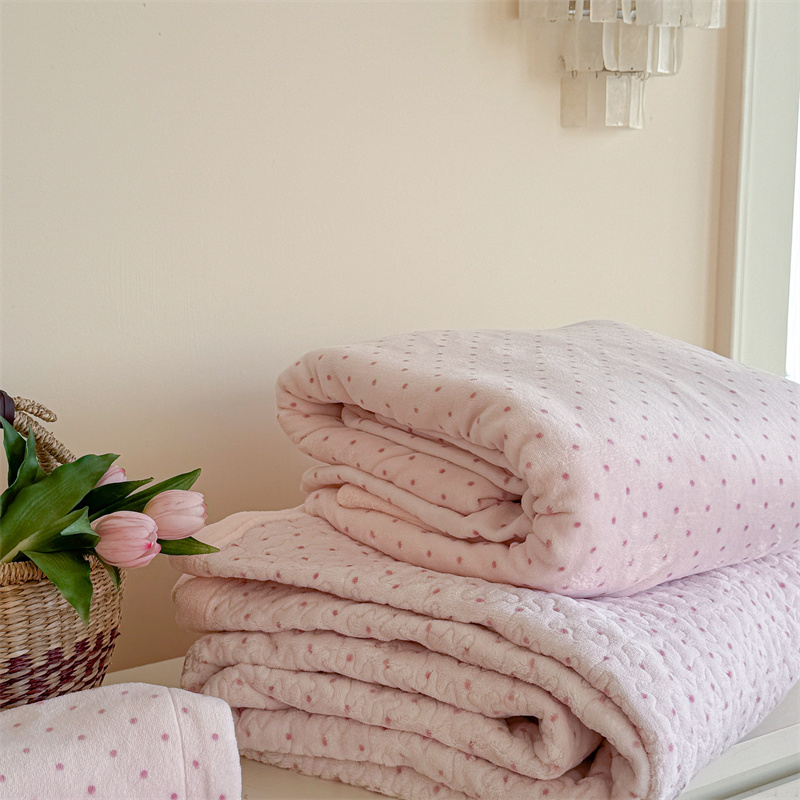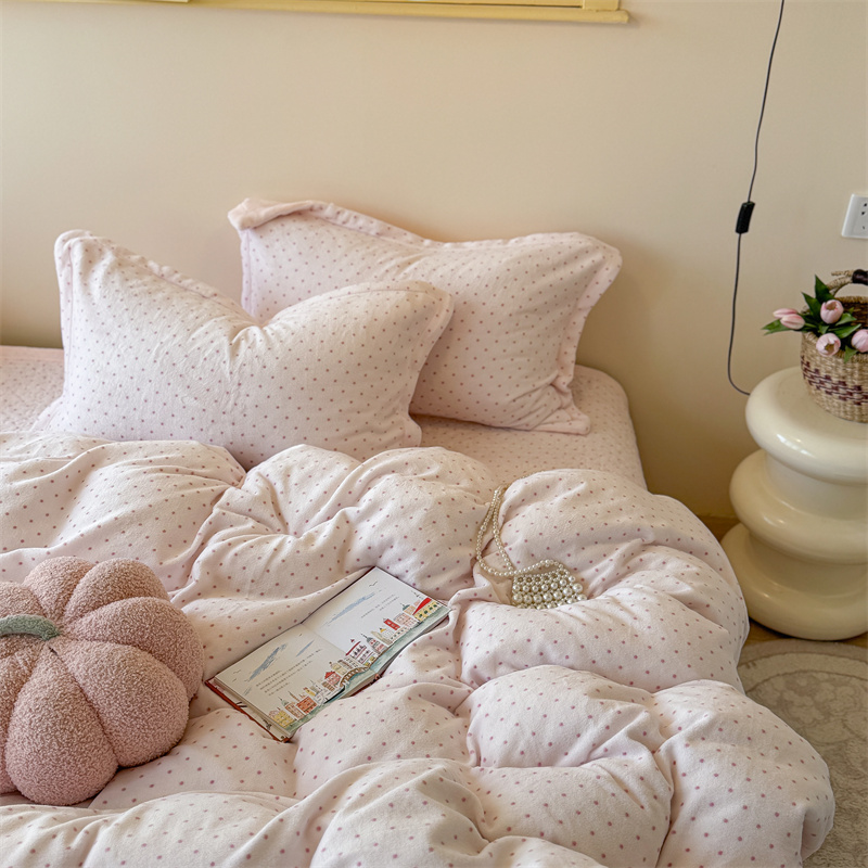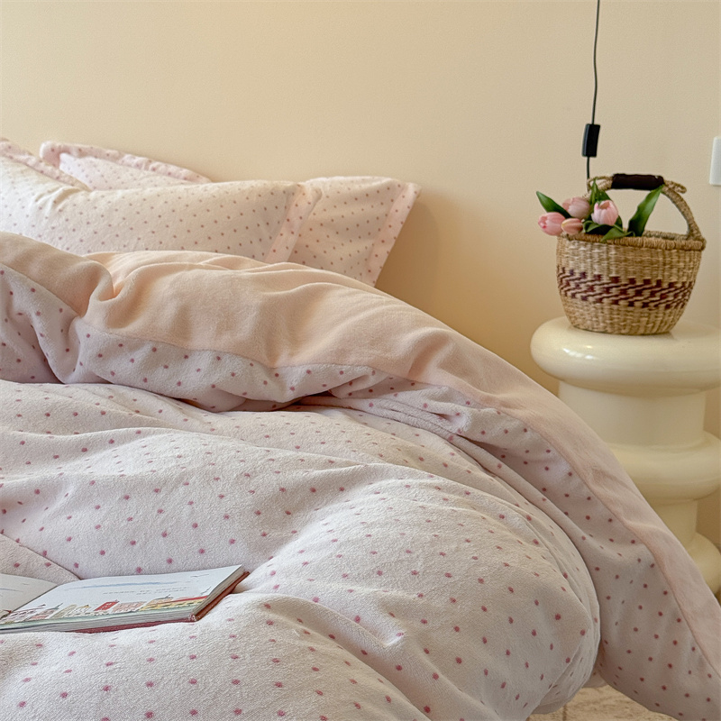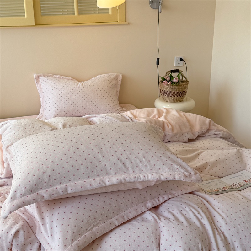 潘朵拉家纺 2025新款牛奶绒床盖款四件套 粉星漫