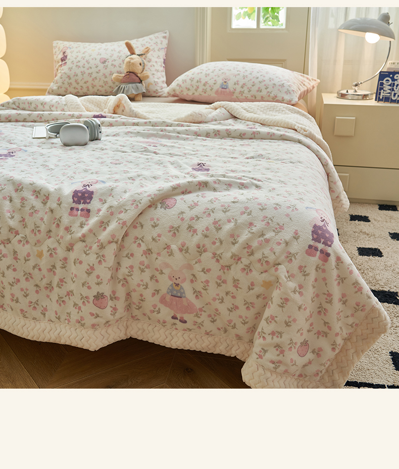 商品名称:晨曦家纺 2025新款加厚保暖牛奶绒贝贝绒三层夹棉毛毯可爱卡通 可爱女孩