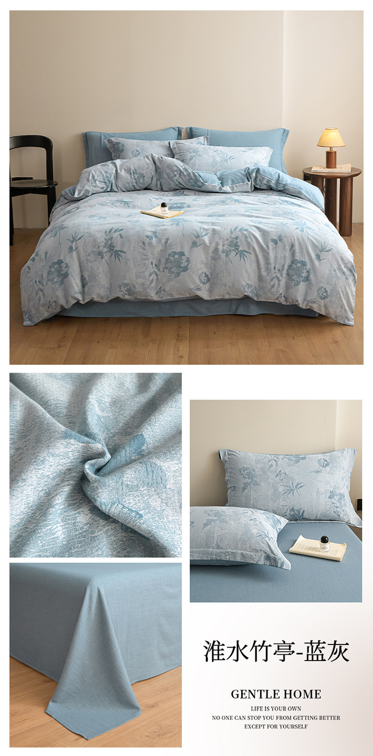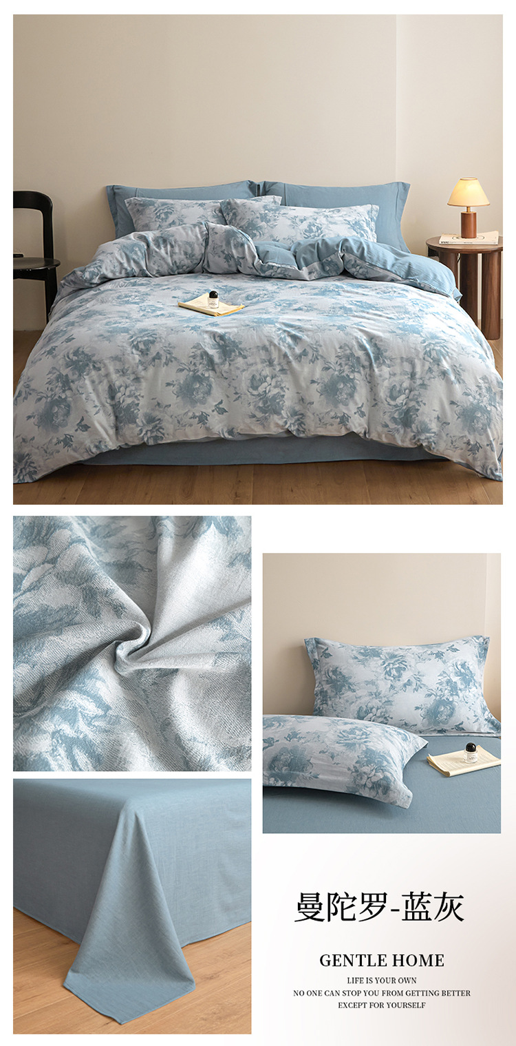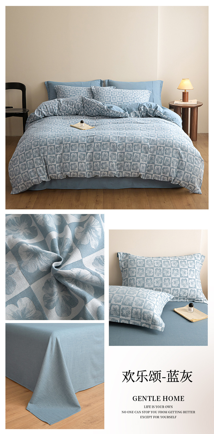 商品名称:良品汇馆 2025【复古三层纱提花四件套】全棉柔软纱布民宿床品 欢乐颂-蓝灰