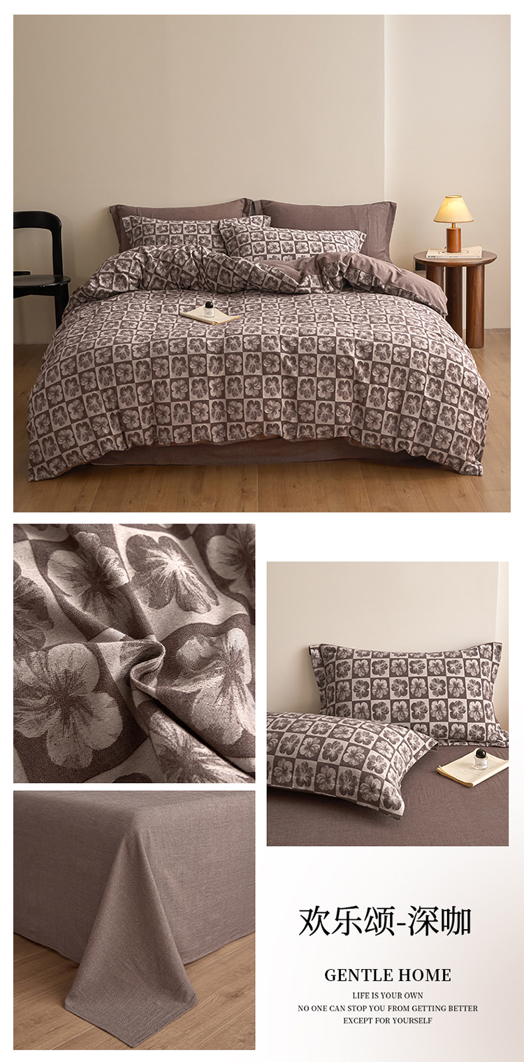 良品汇馆 2025【复古三层纱提花四件套】全棉柔软纱布民宿床品 欢乐颂-蓝灰
