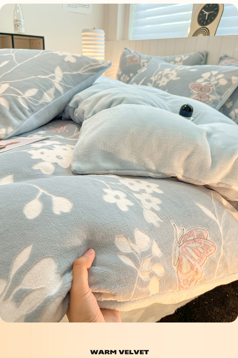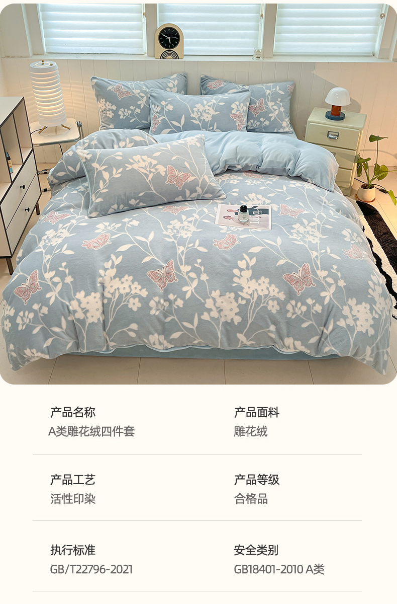 当前位置: 91家纺网 > 商品网购 > 床品套件 > 四件套 > 牛奶绒四件套 > 星座 2025新款牛奶绒雕花绒四件套 蝶语蓝韵