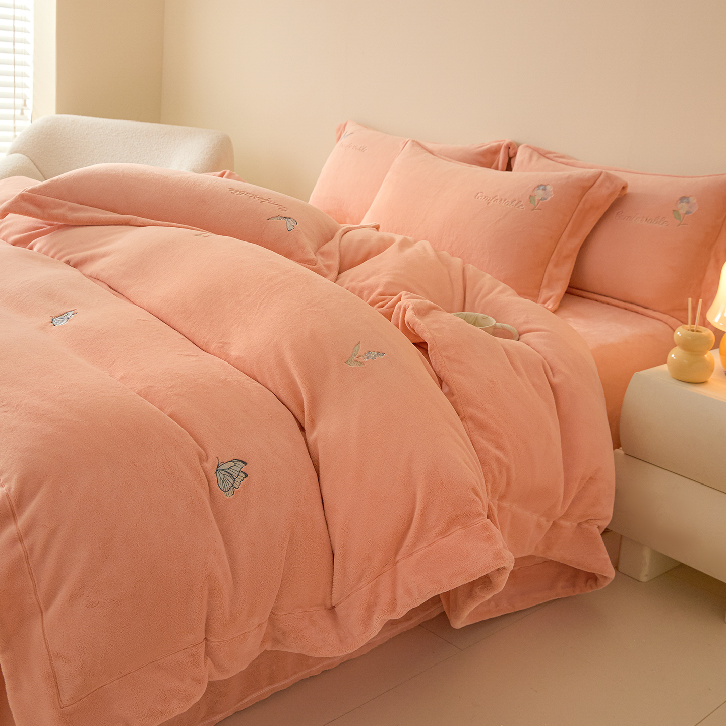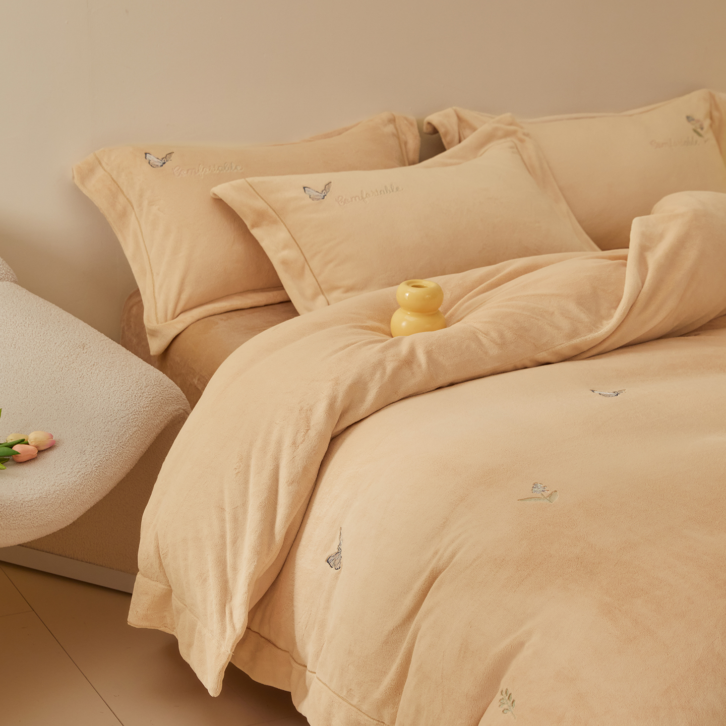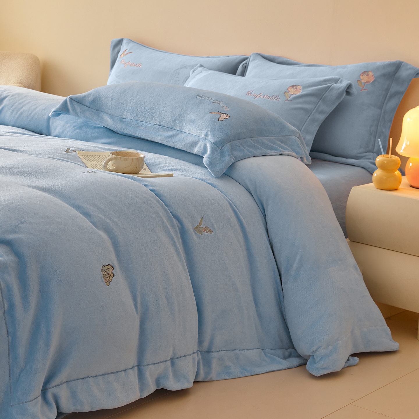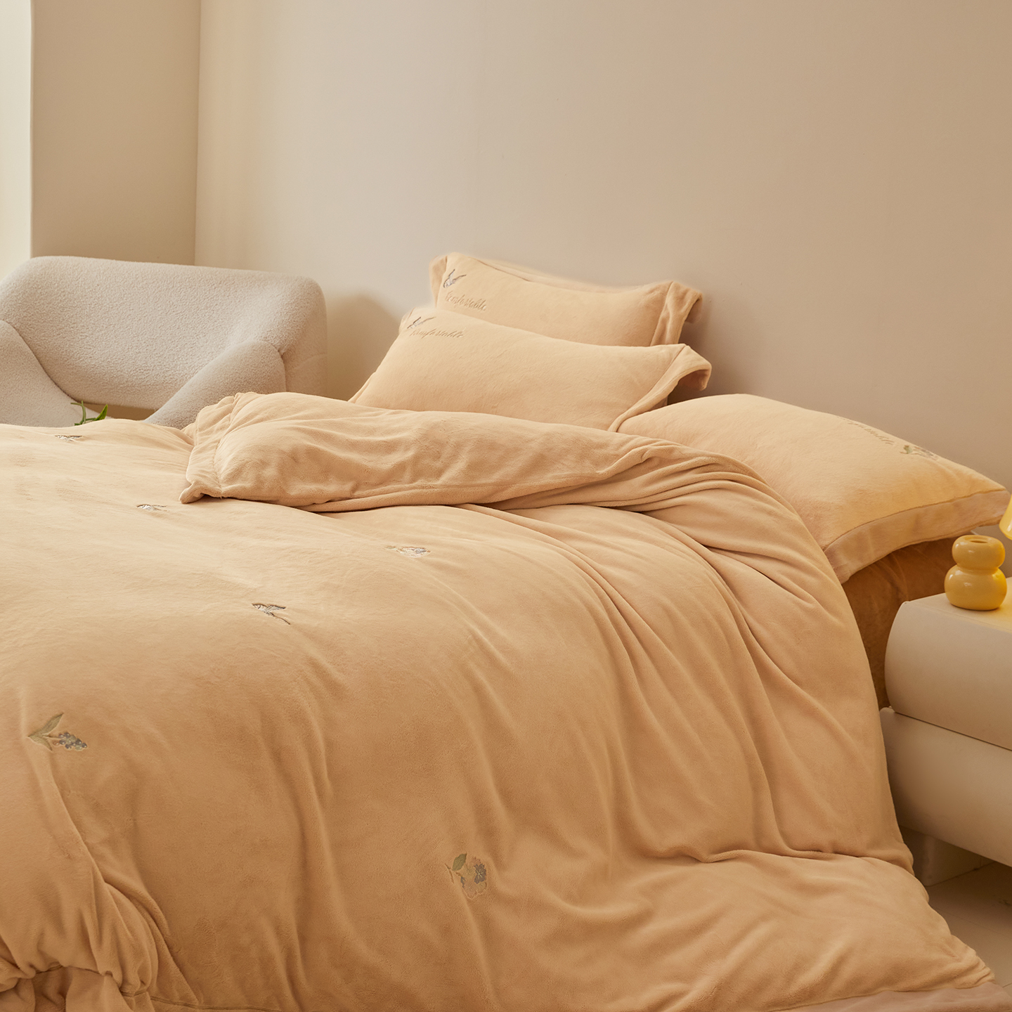 商品名称:(总)控价 2025年新款 9.2斤240克全消光A类满屏刺绣牛奶绒四件套-悦动