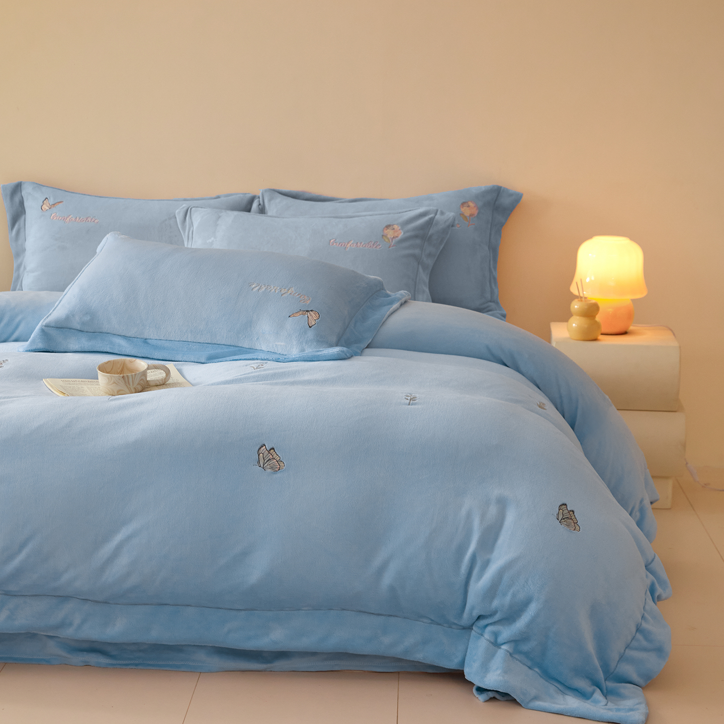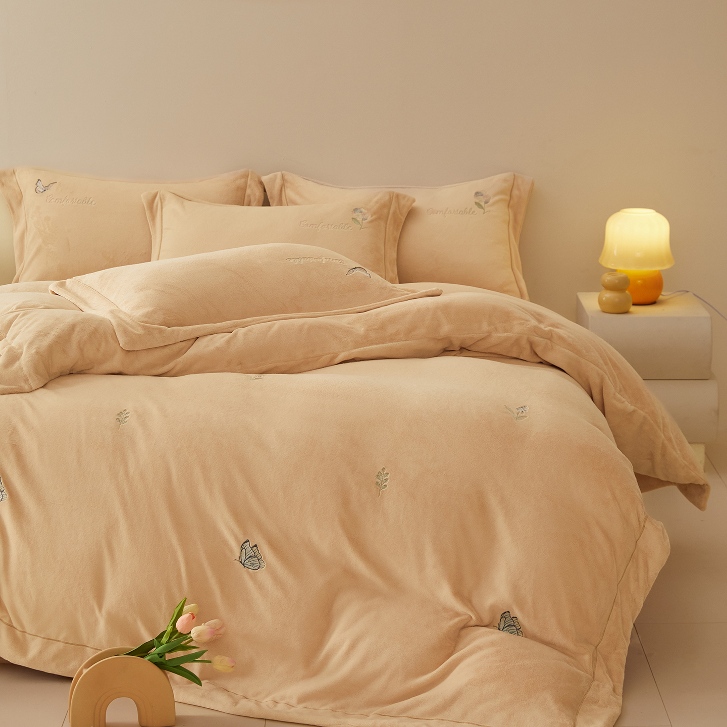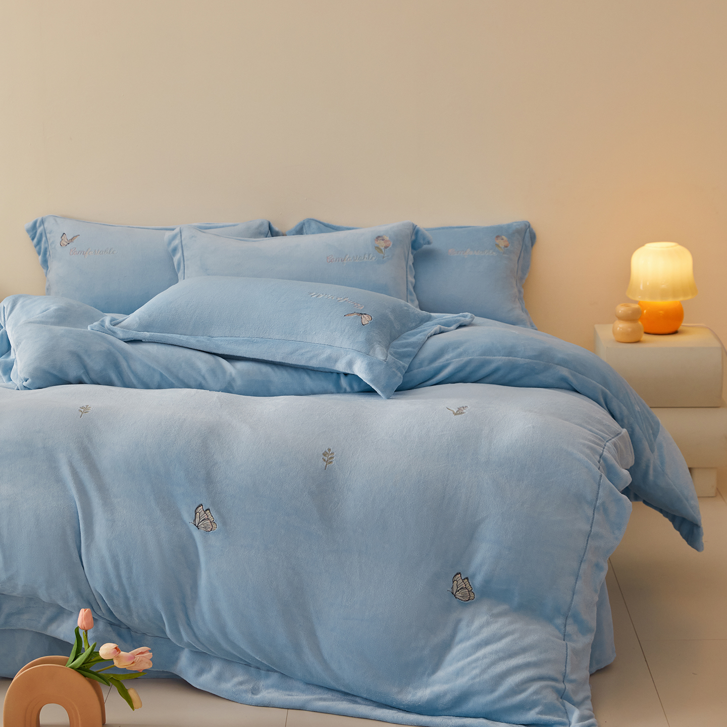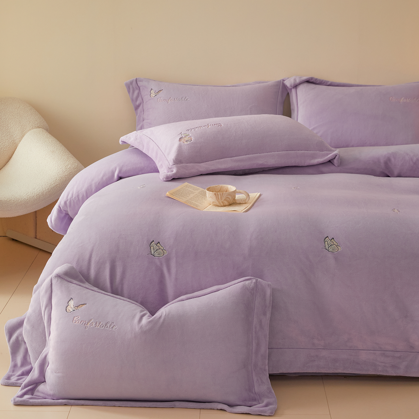 商品名称:(总)控价 2025年新款 9.2斤240克全消光A类满屏刺绣牛奶绒四件套-悦动