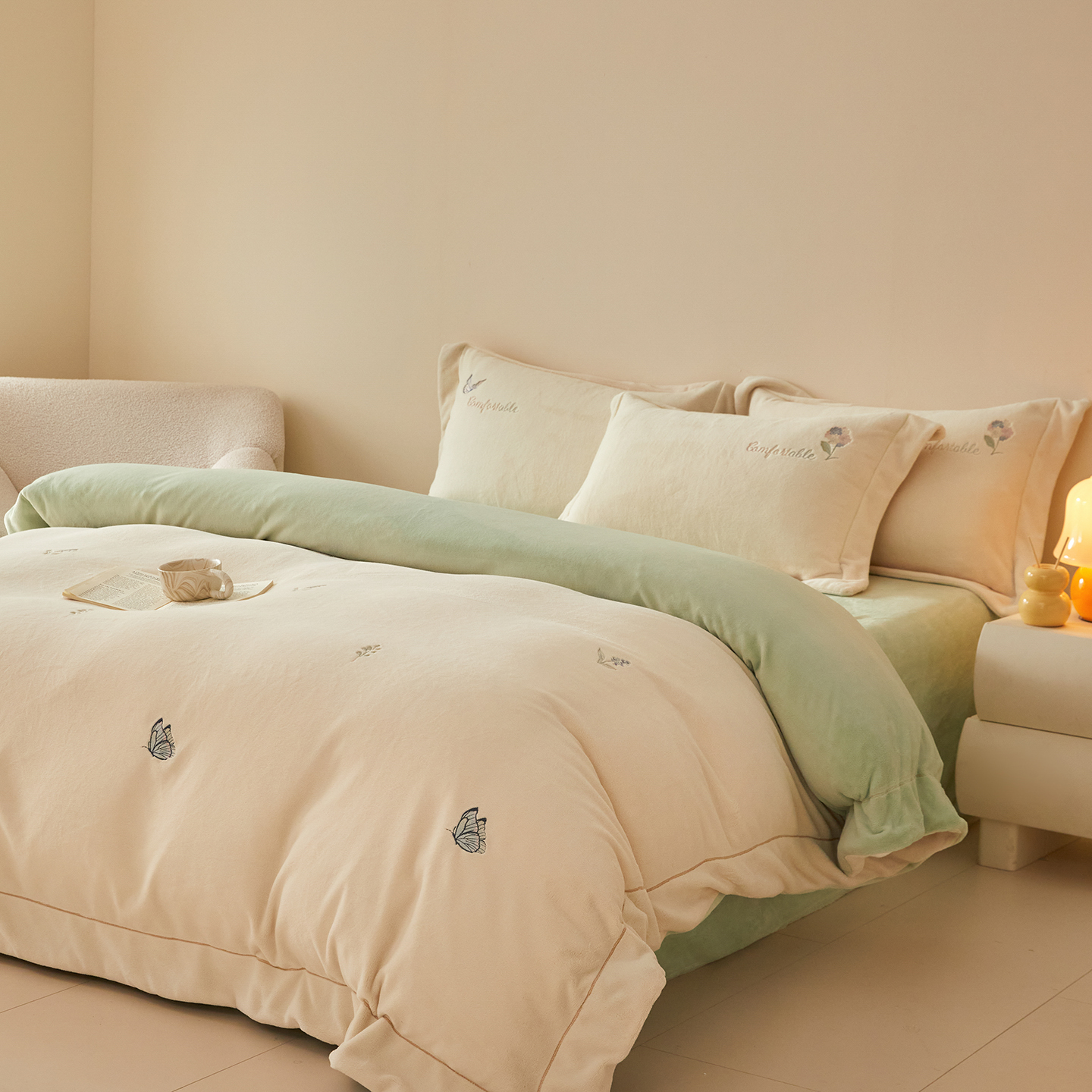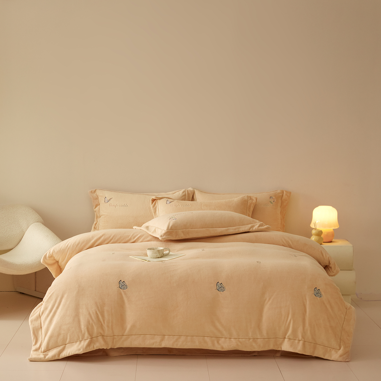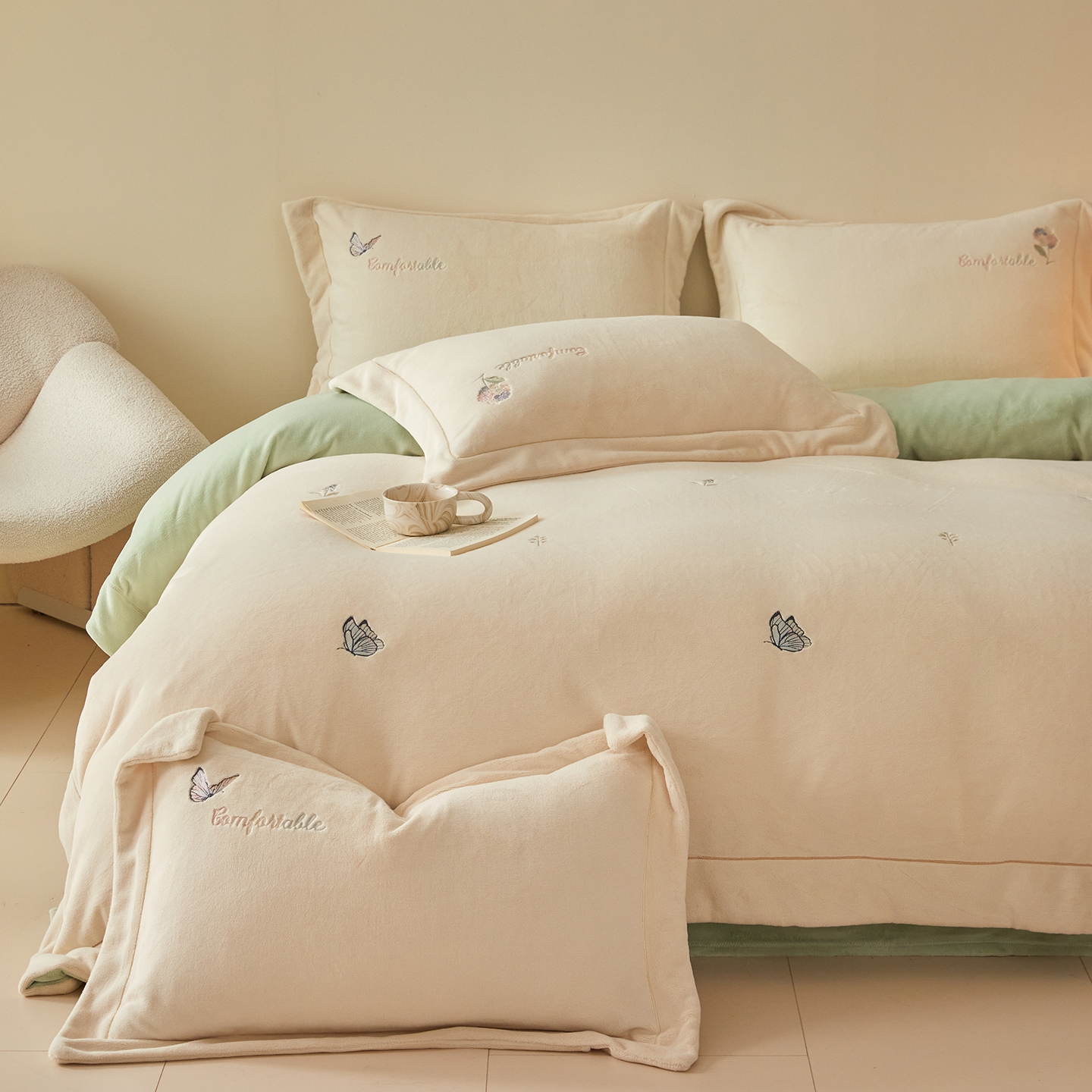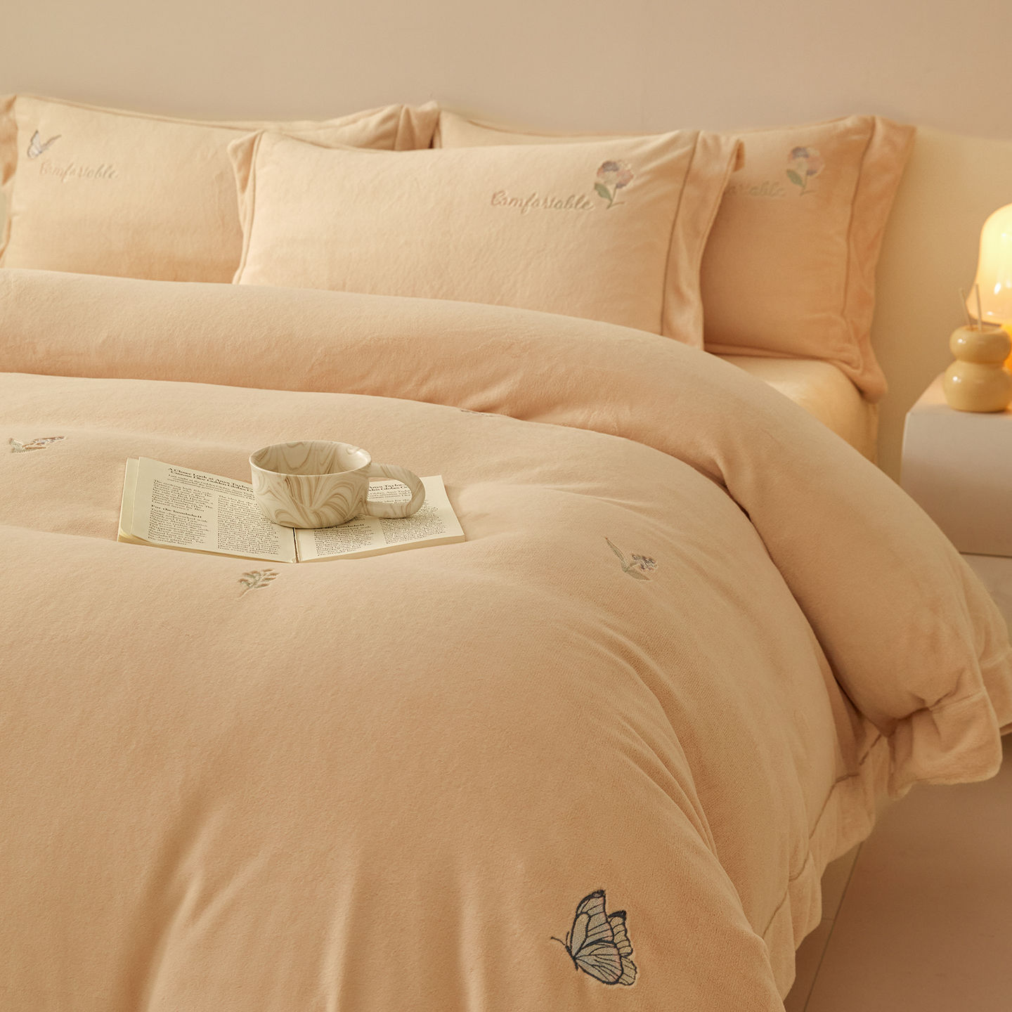 商品名称:(总)控价 2025年新款 9.2斤240克全消光A类满屏刺绣牛奶绒四件套-悦动