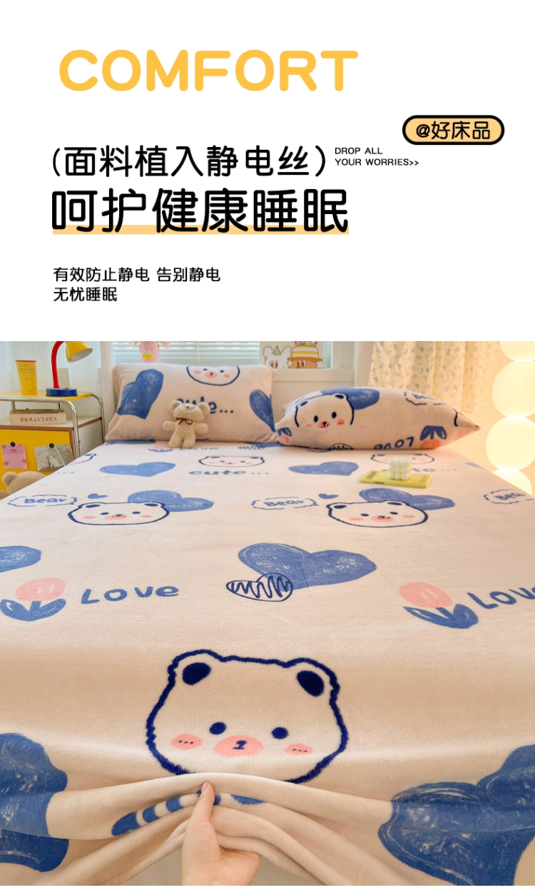 (总)维娜斯家纺 2025新款卡通牛奶绒印花床笠单件,草莓酱,花语岚山,欢度节日,欢乐猫咪,可爱猫咪,魅力小熊,萌萌哈奇,青柠薄荷,仙草,小熊梦梦
