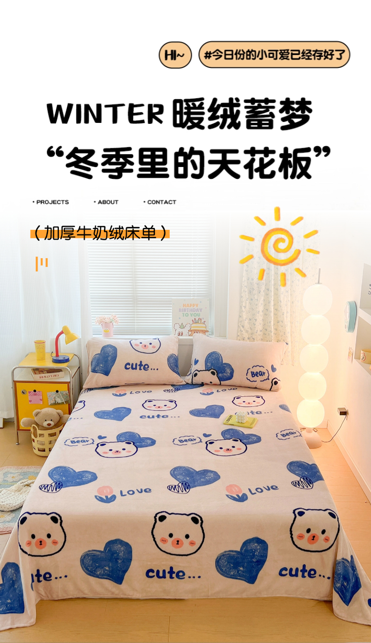 商品名称:维娜斯家纺 2025新款卡通牛奶绒印花床单单件 魅力小熊