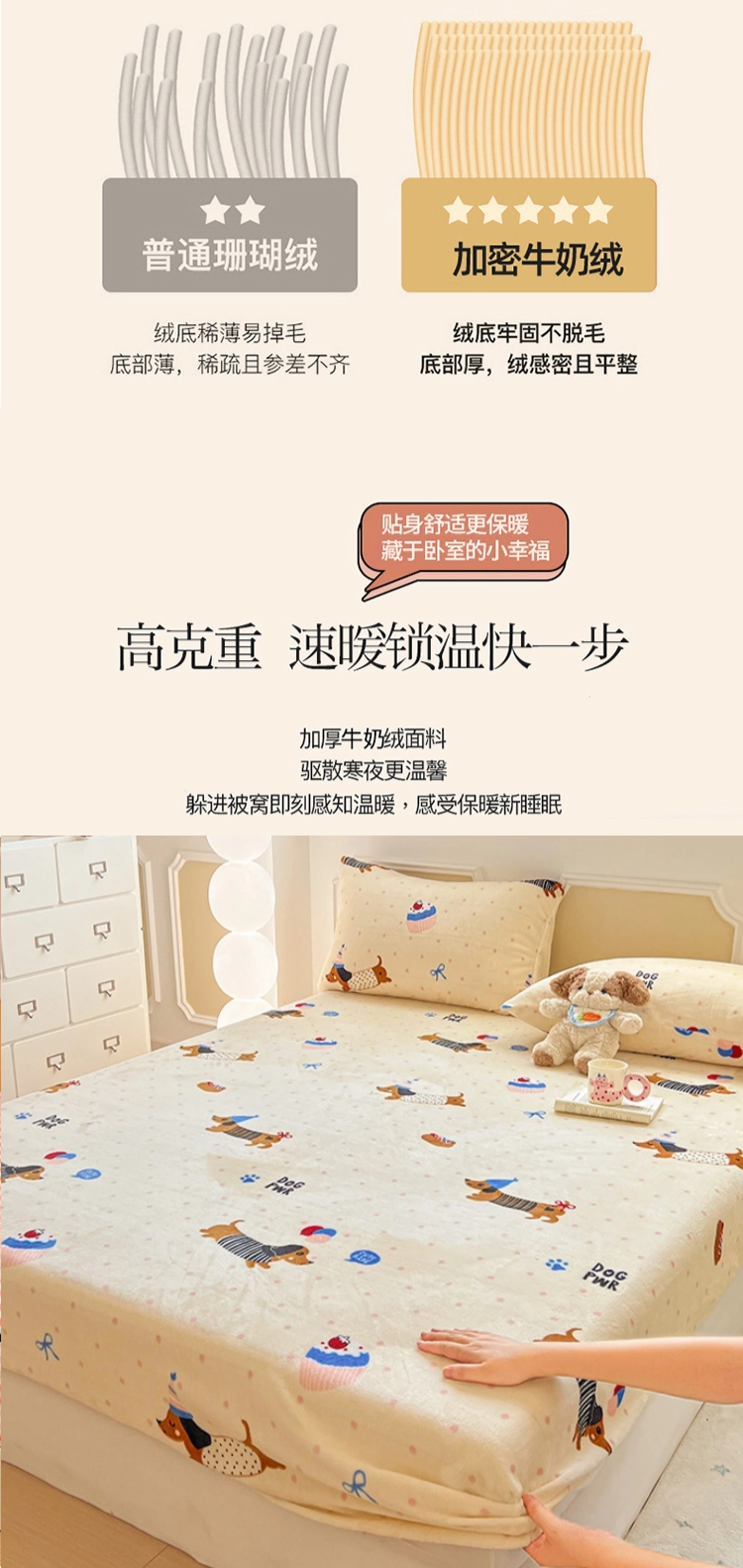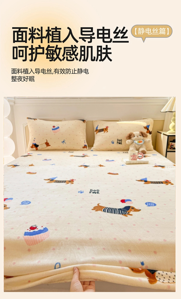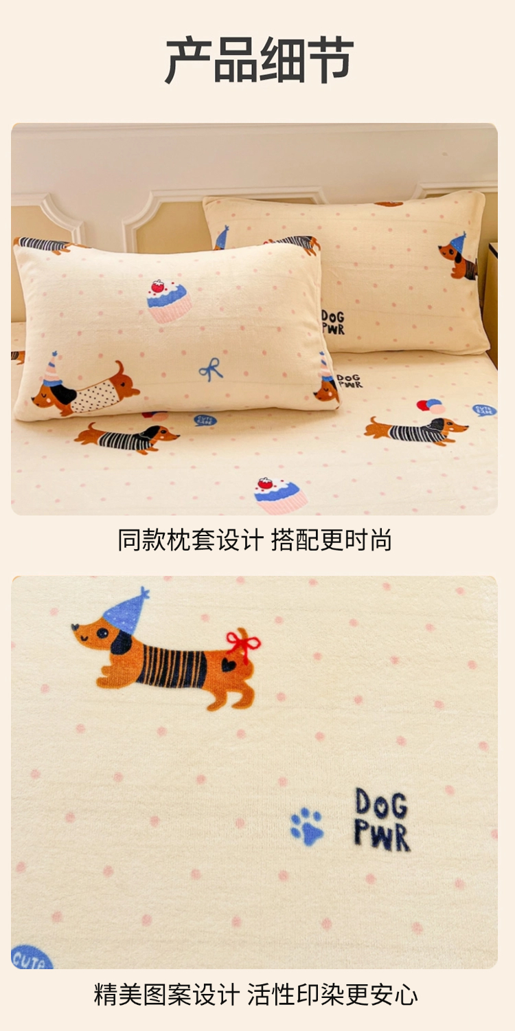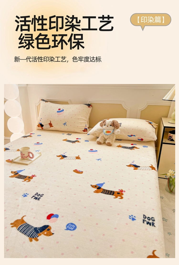 商品名称:维娜斯家纺 2025新款卡通牛奶绒印花床笠单件 欢度节日