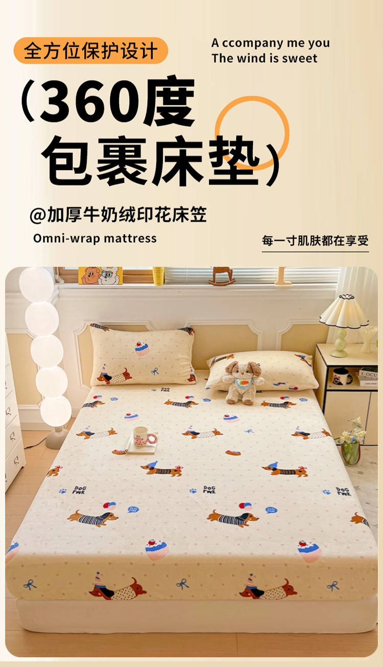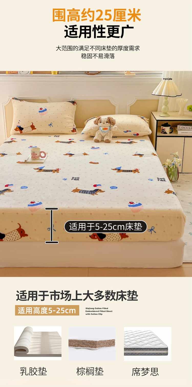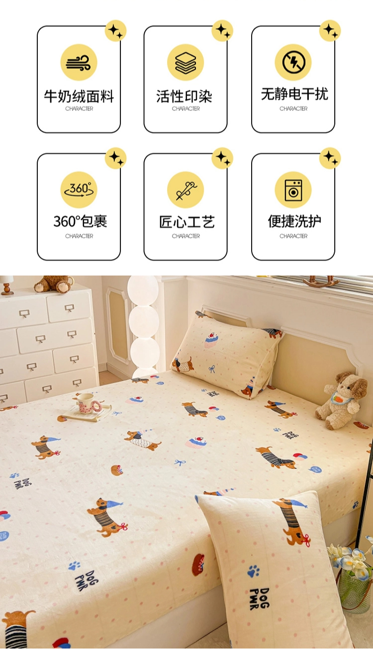 维娜斯家纺 2025新款卡通牛奶绒印花床笠单件 欢度节日