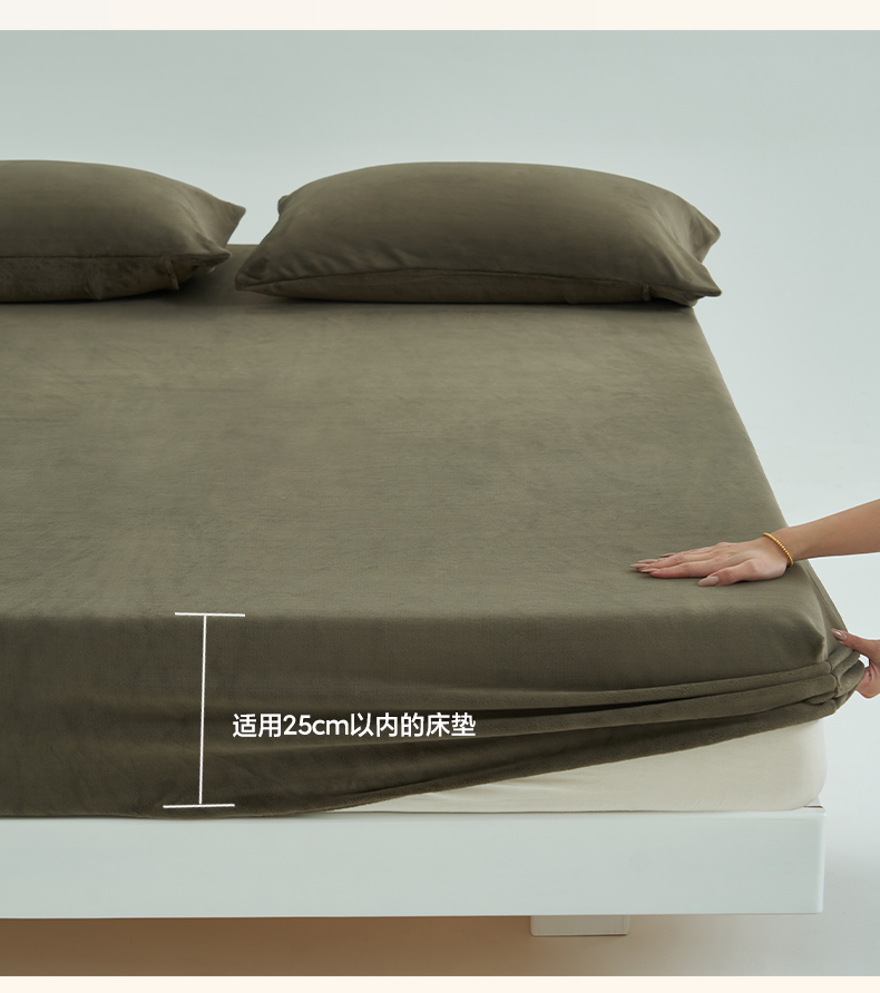 寐绸家纺 2025新款牛奶绒纯色暖绒床笠 暖绒床笠-暗墨绿