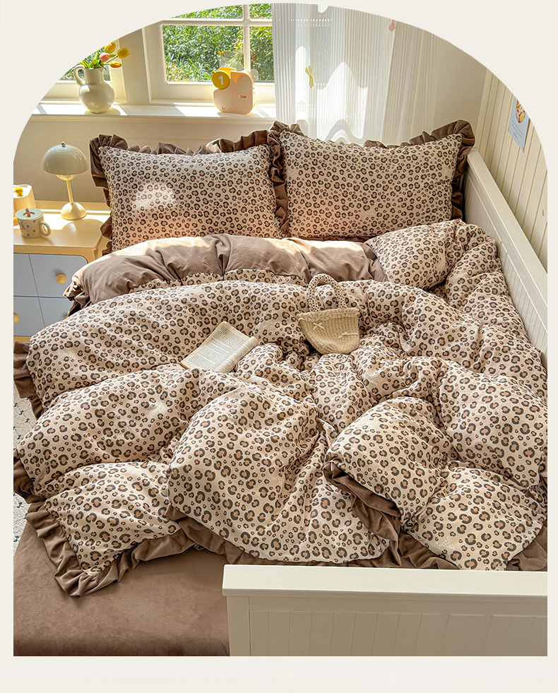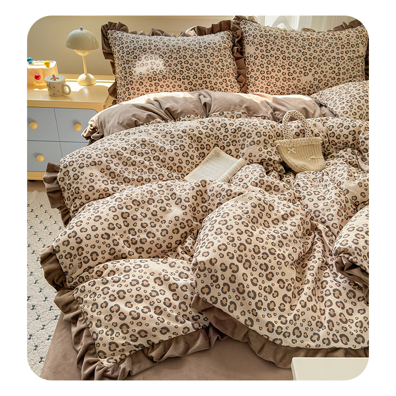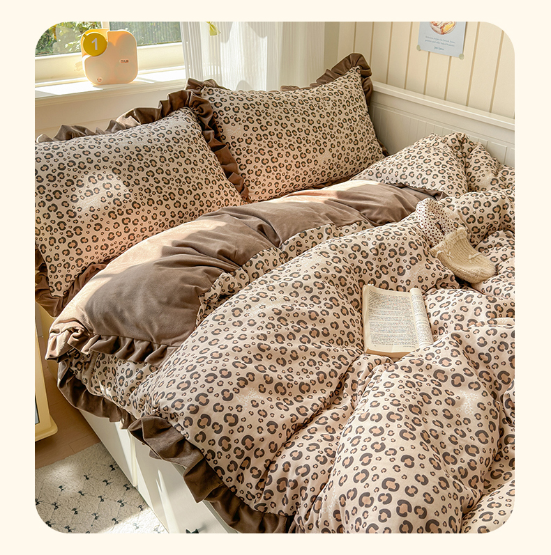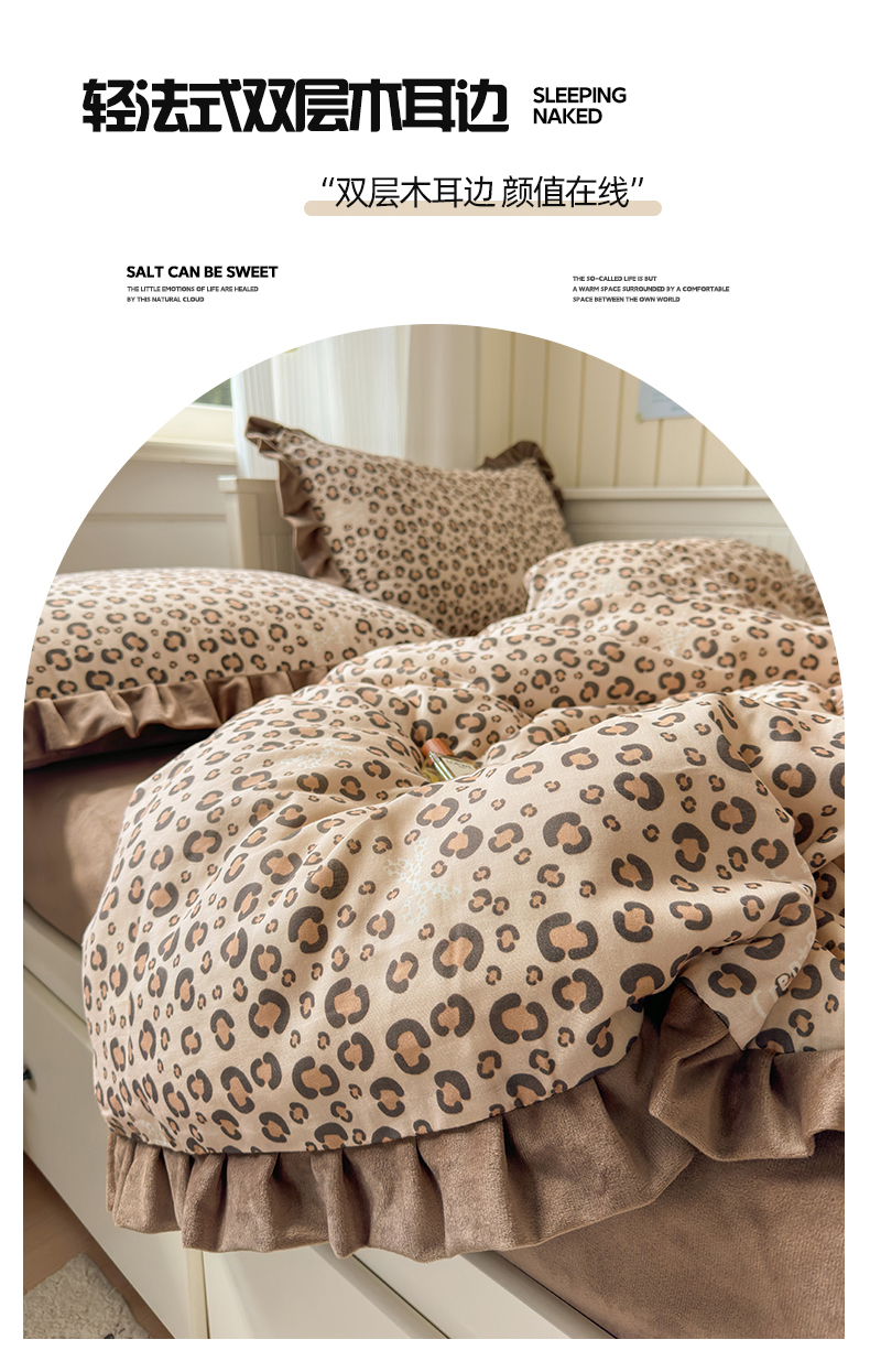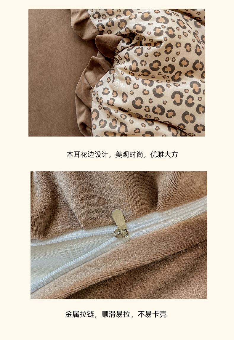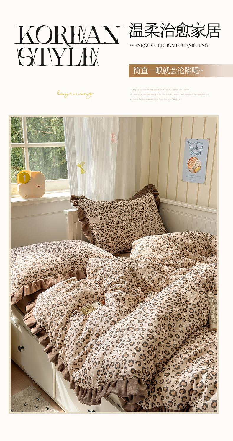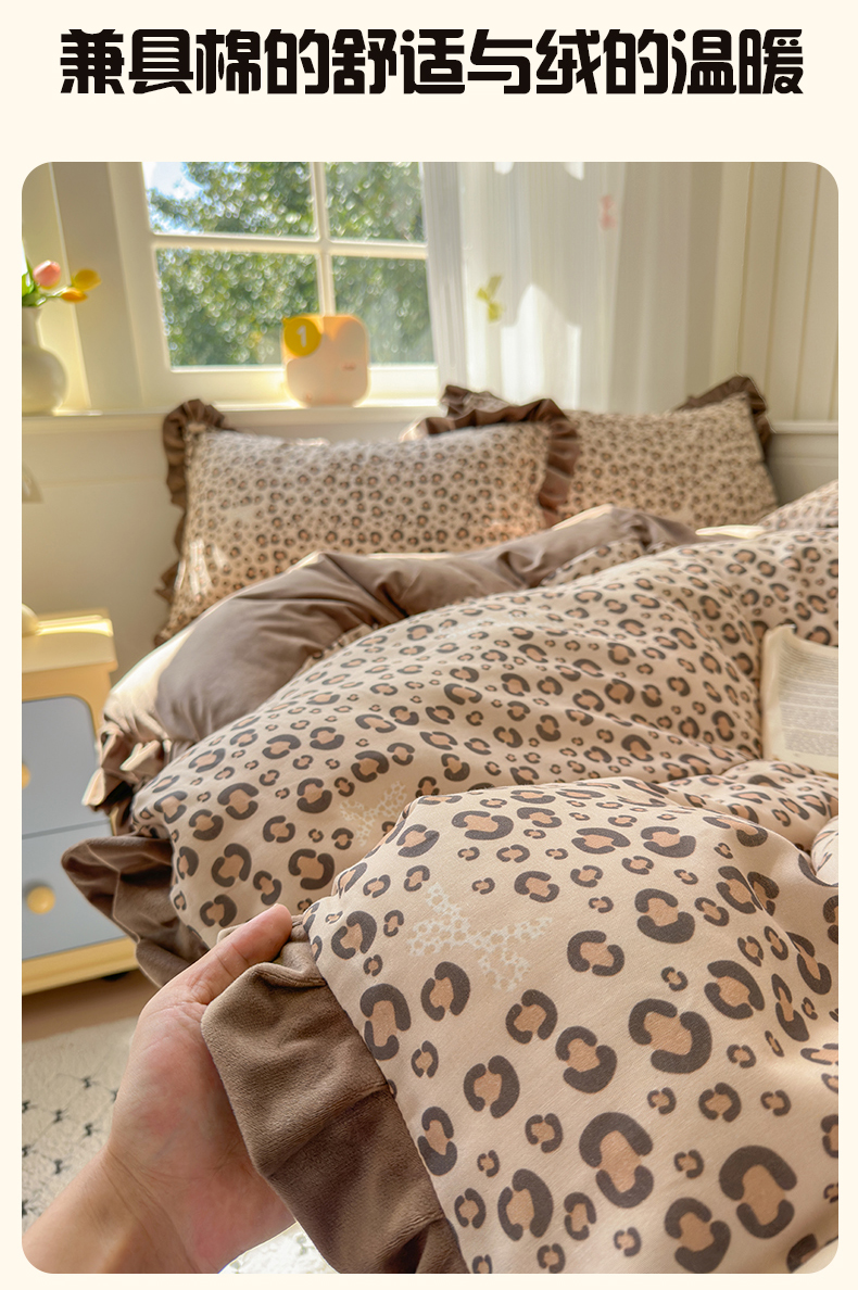 当前位置: 91家纺网 > 商品网购 > 床品套件 > 四件套 > 全棉普通四件套 > 淑女公社家纺 2025秋冬新款纯棉双层纱加韩国绒四件套 甜酷女孩 咖