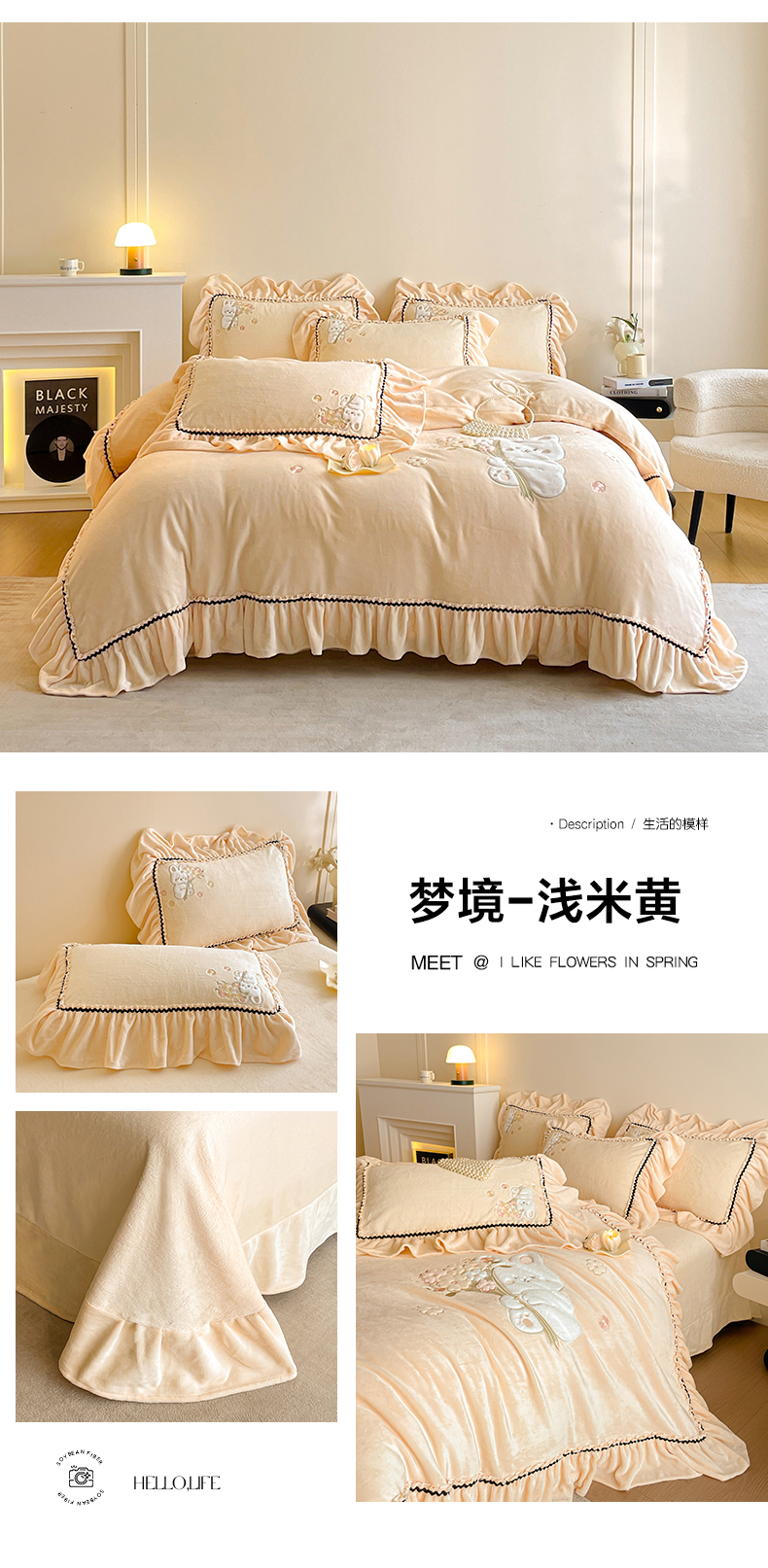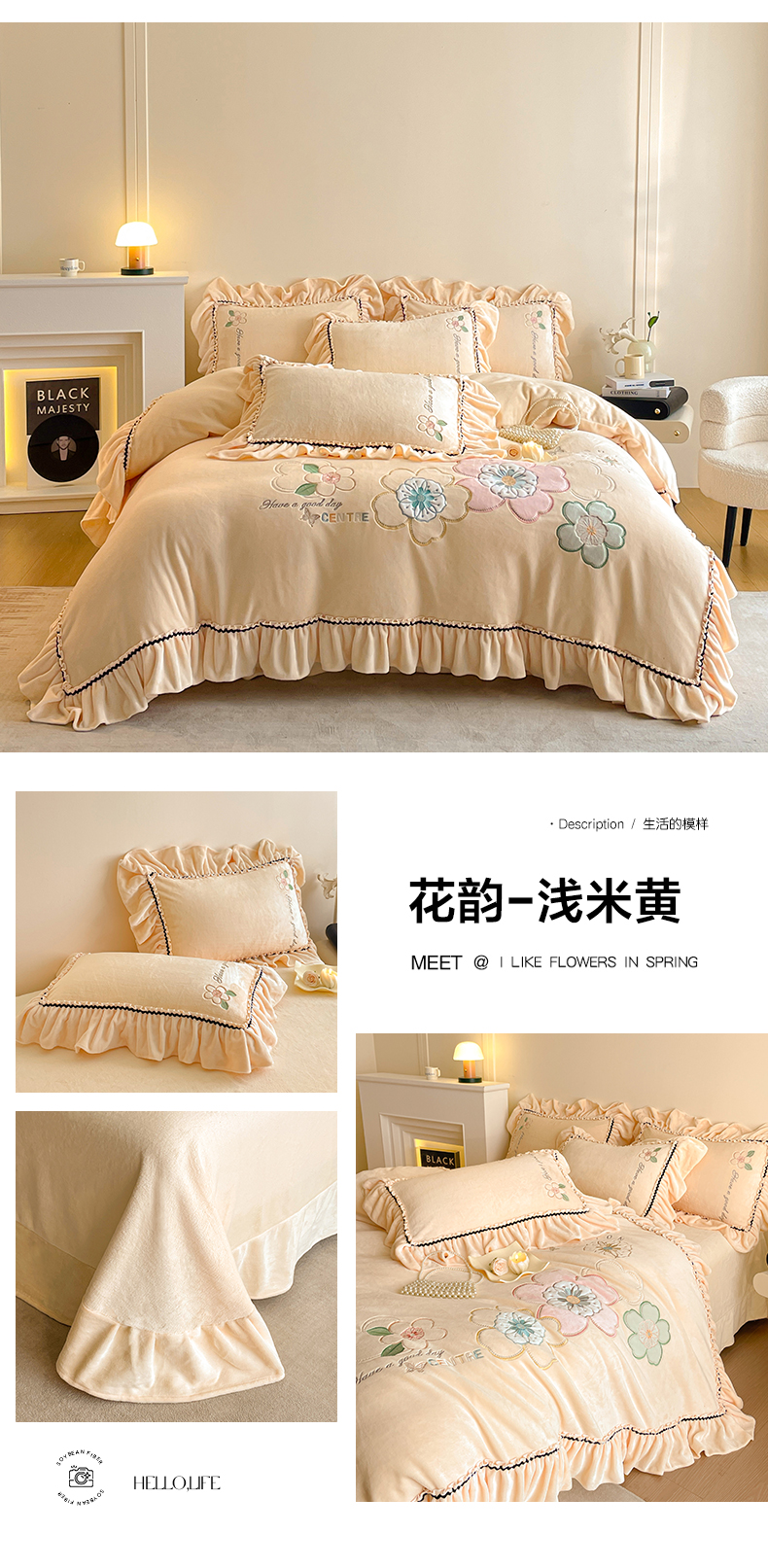 (总)民新家纺 2025新款牛奶绒花边床裙四件套,浪漫时光-浅粉,浪漫时光-大红,浪漫时光-灰,浪漫时光-浅蓝,浪漫时光-浅绿,浪漫时光-浅米黄,浪漫时光-浅紫