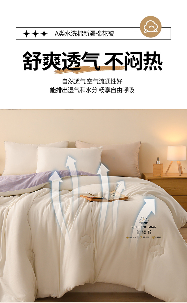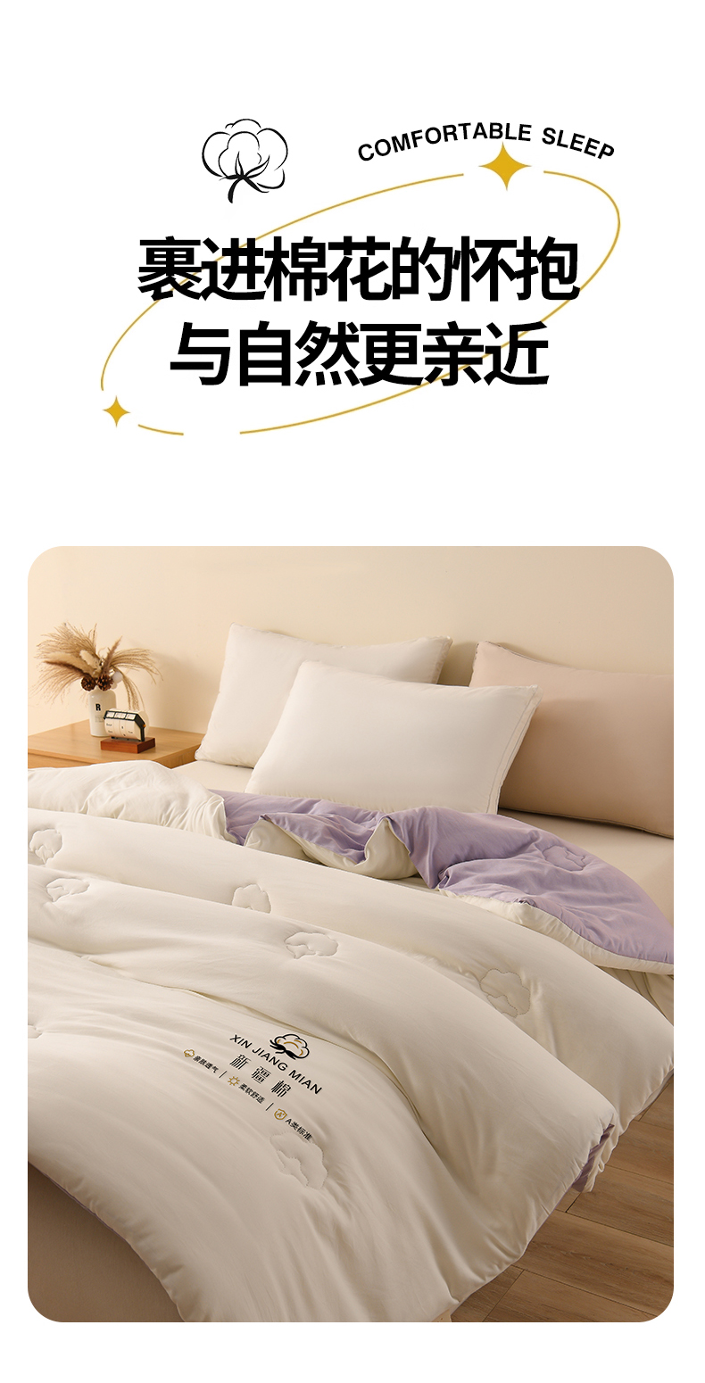 • 91家纺网 家纺一手货源 找家纺 锦逸家居 2025新款亲肤舒适水洗棉新疆棉花被被子被芯 白紫