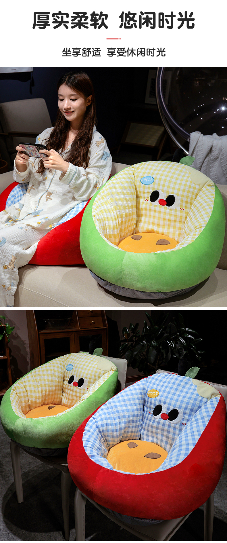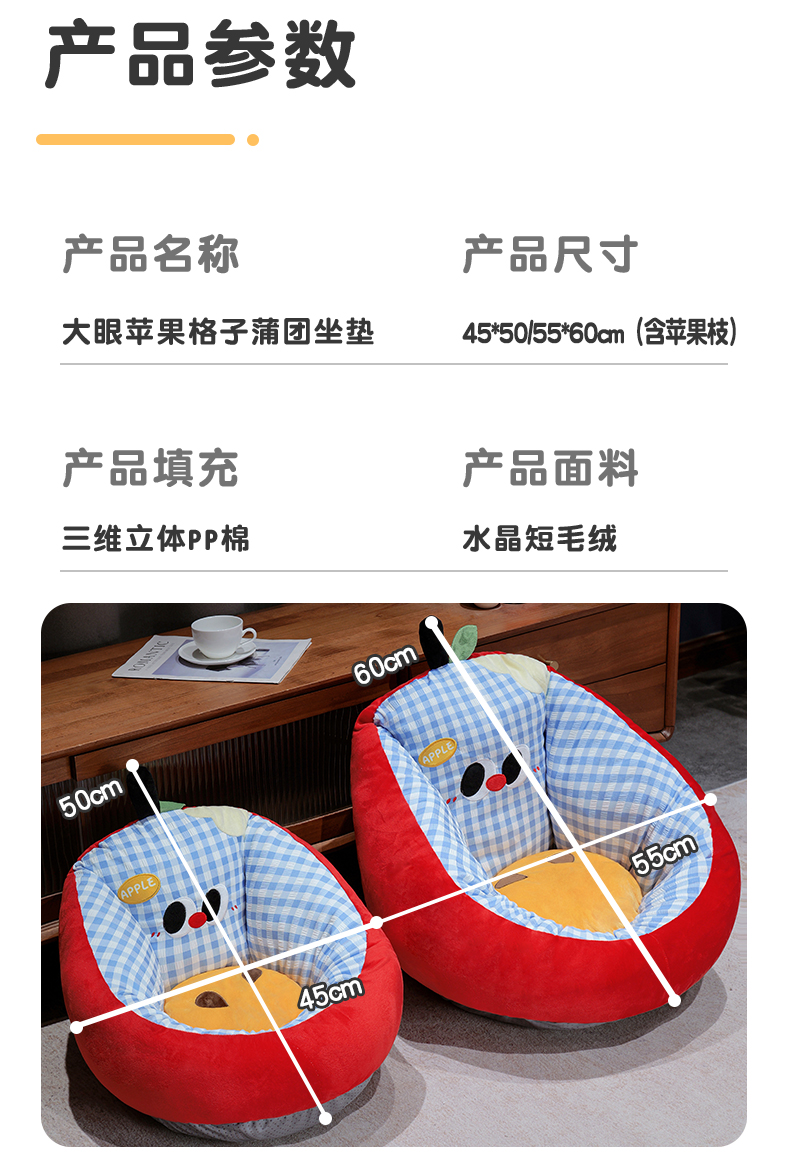 商品名称:(总)仟亿莱 2025新款大眼苹果格子半包围蒲团坐垫