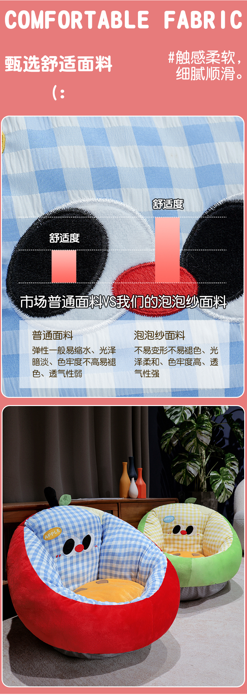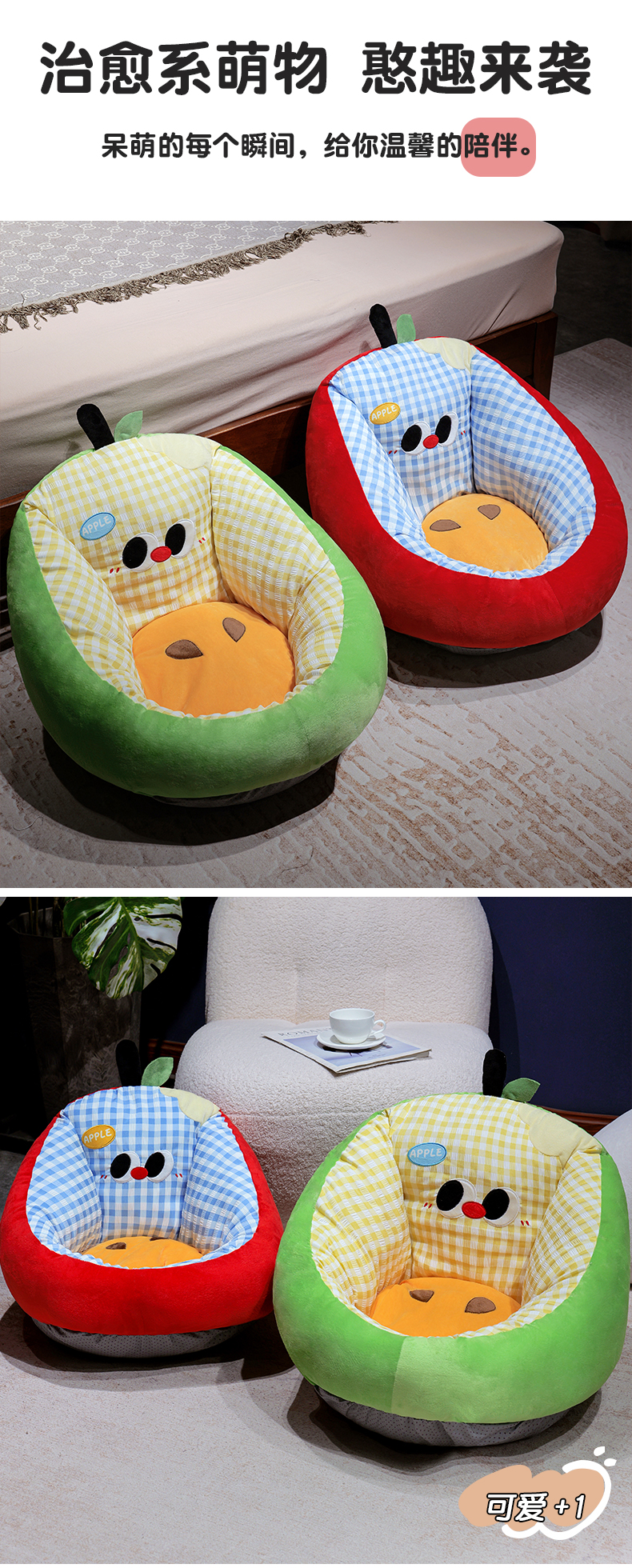 (总)仟亿莱 2026新款惊讶苹果小虫大脚床头靠垫,拥抱惊讶半果,拥抱惊讶全果,组合图(仅供展示不可下单)