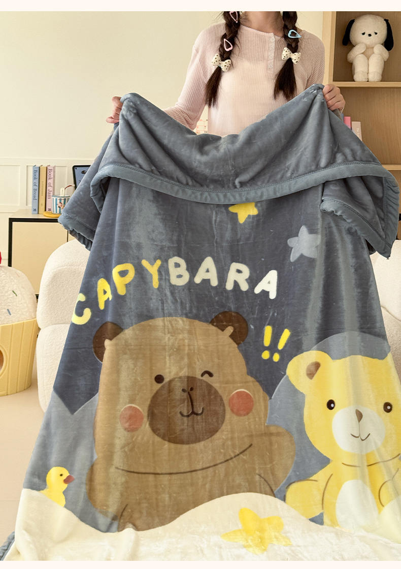 (总)舒隅家纺 2025新款法莱绒大版休闲毯盖毯毯子,卡皮巴拉,熊猫墩墩,休闲时光,软乎面包,小狗散步,复古腊肠狗,企鹅萌萌,条纹猫咪