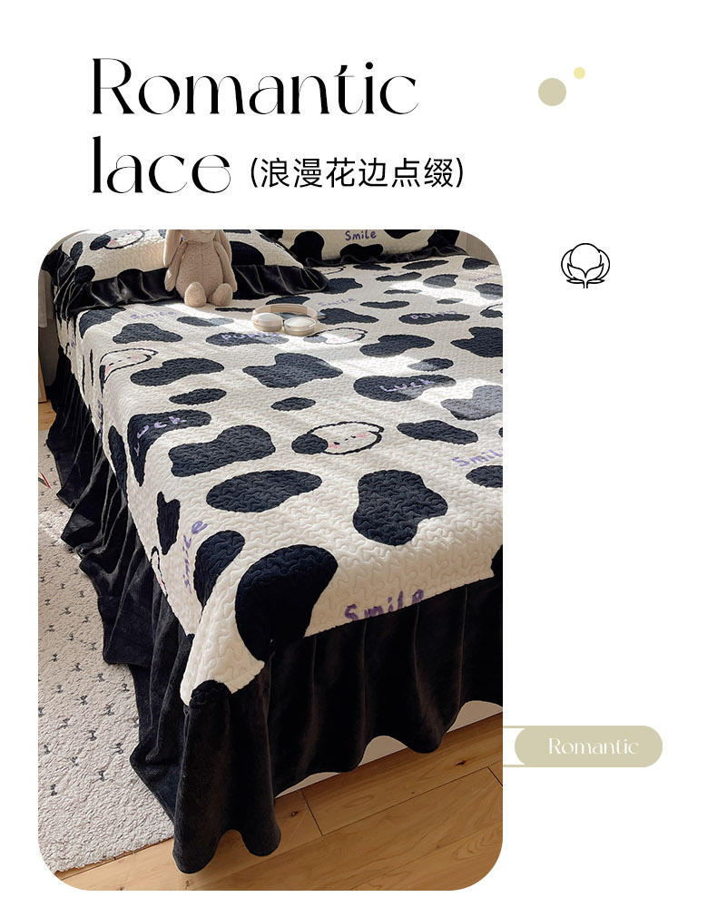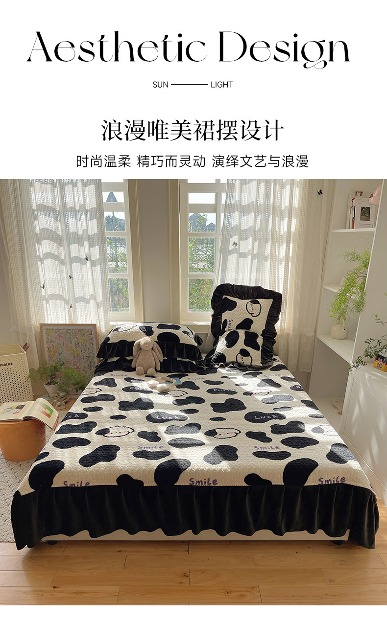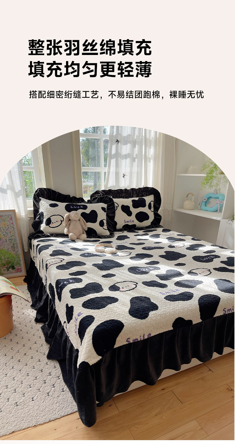商品名称:红嘴企鹅 2025新款花边加厚牛奶绒单品床盖单件床盖三件套 奶油狗