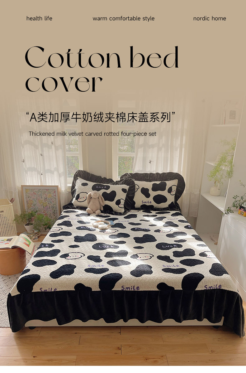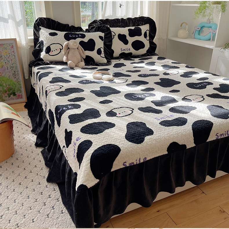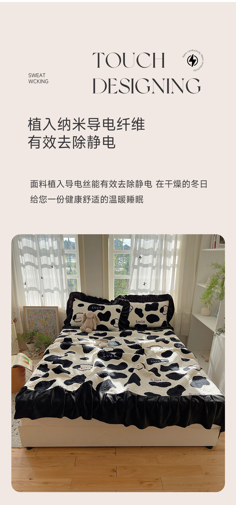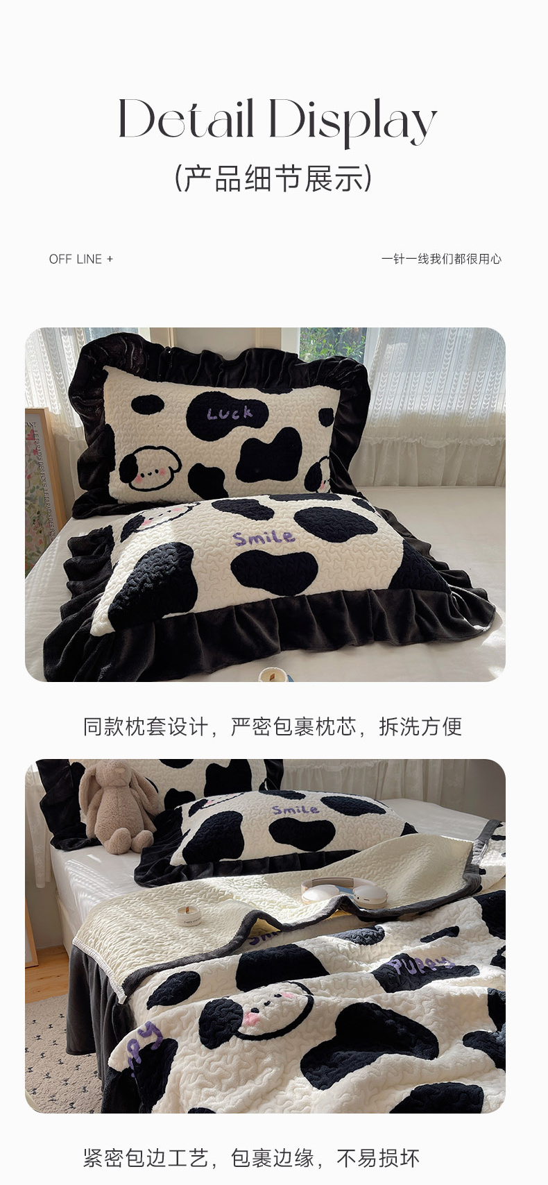 商品名称:红嘴企鹅 2025新款花边加厚牛奶绒单品床盖单件床盖三件套 奶油狗