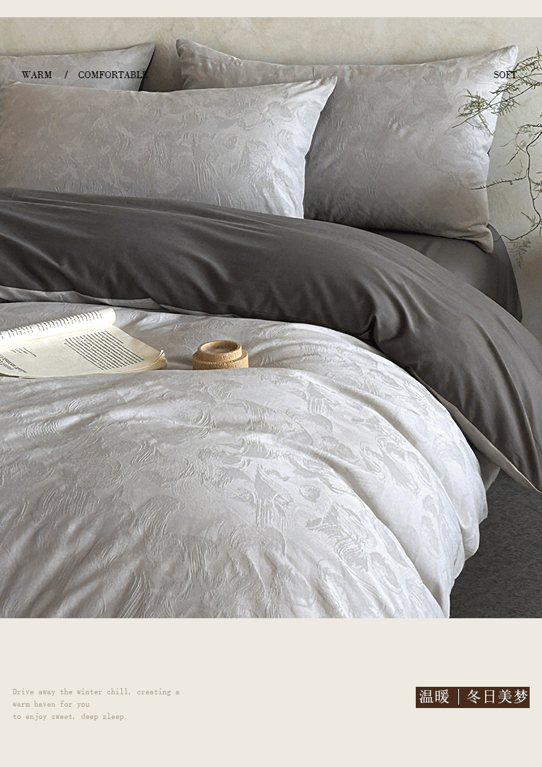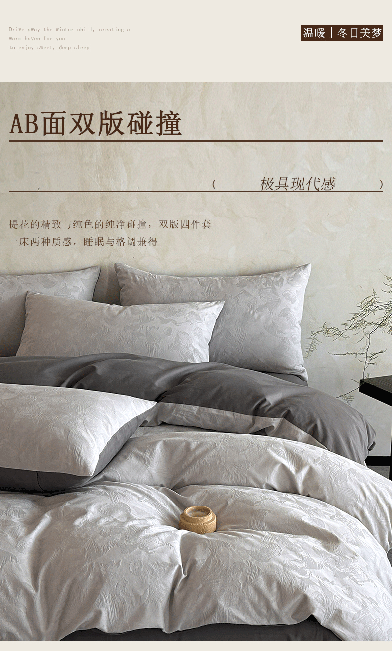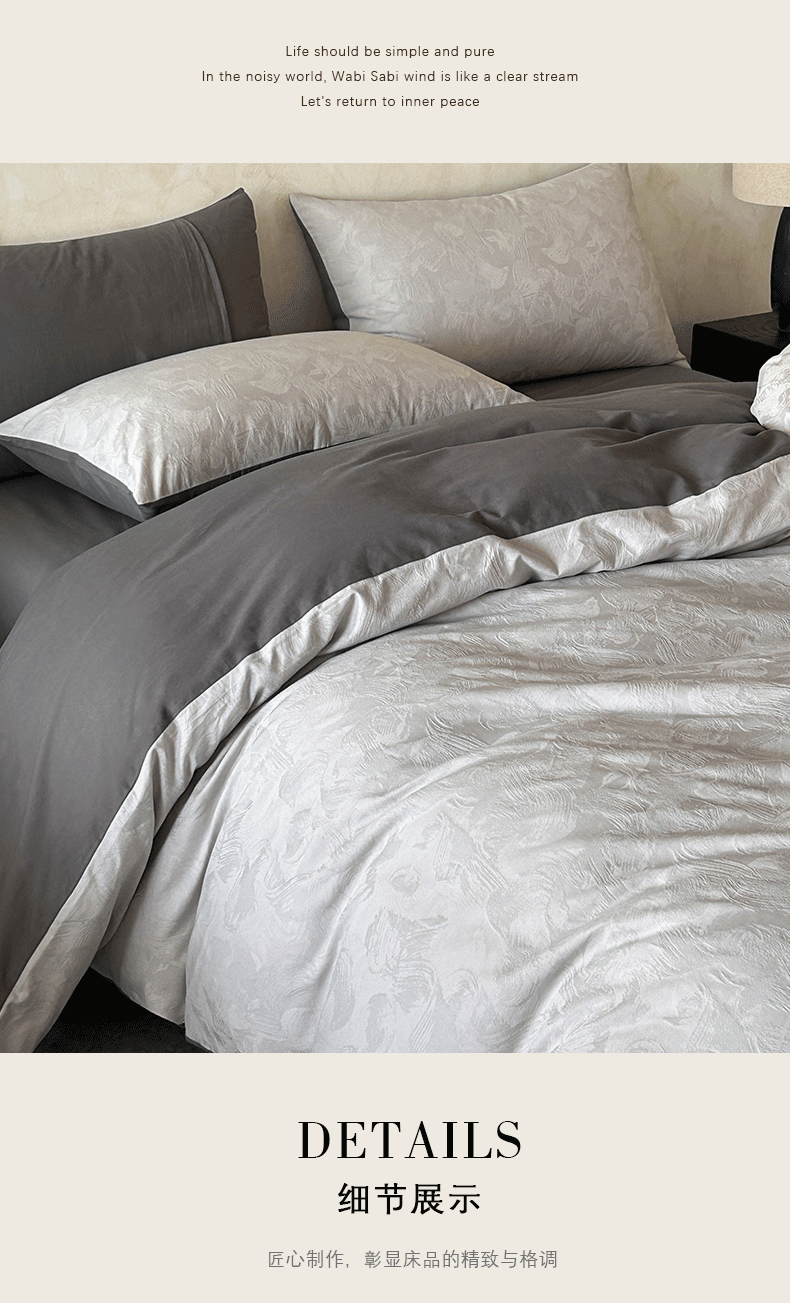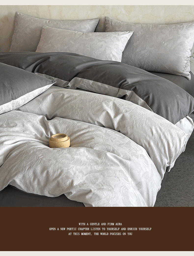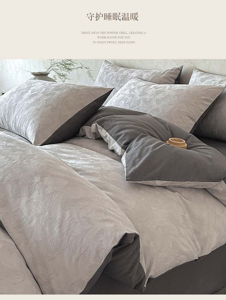 618家纺 2025新款全棉磨毛提花法式双拼四件套-赫本系列 赫本-摩卡灰