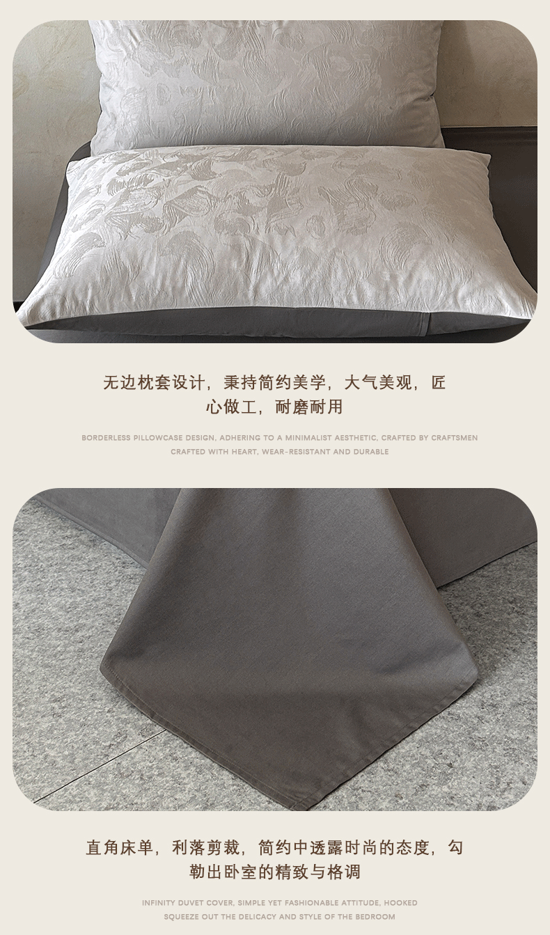 商品名称:618家纺 2025新款全棉磨毛提花法式双拼四件套-赫本系列 赫本-摩卡灰