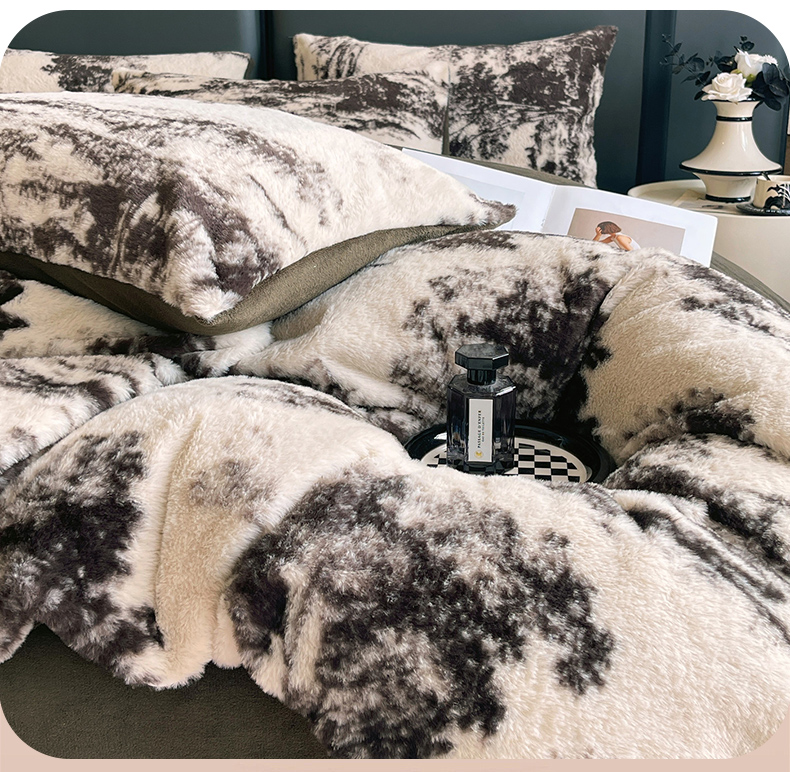 佰亿莱 2026新款印花兔毛绒双面锁温暖绒四件套 云杉-咖
