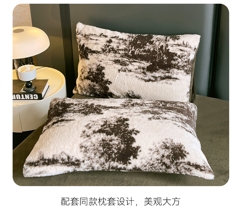 商品名称:佰亿莱 2026新款印花兔毛绒双面锁温暖绒四件套 云杉-咖