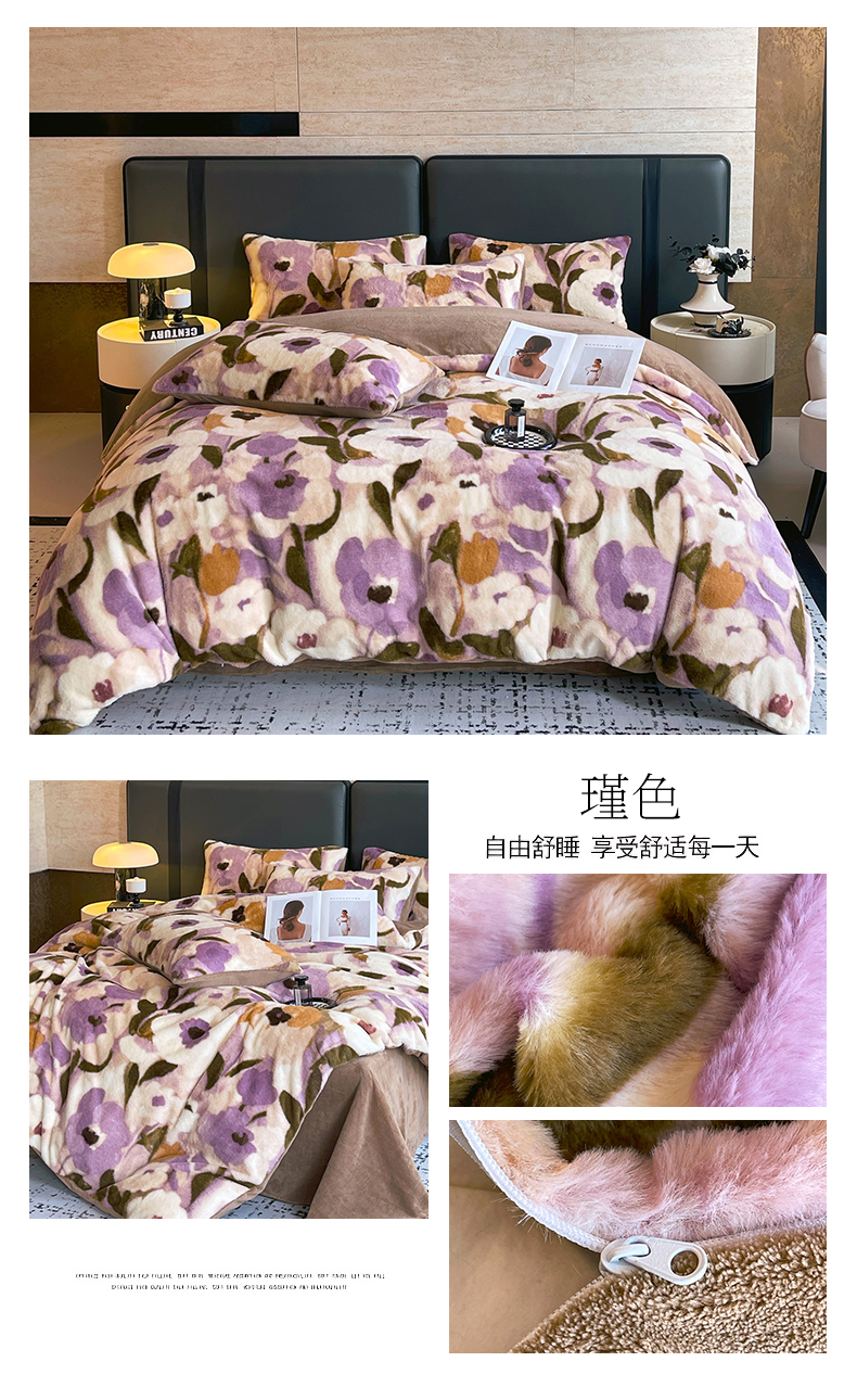 (总)佰亿莱 2026新款印花兔毛绒双面锁温暖绒四件套,凤蝶-咖,栖音,墨栖-咖,秋离,墨栖-白,山月记,瑾色,条纹咖,晚棠,云杉-灰,云杉-咖