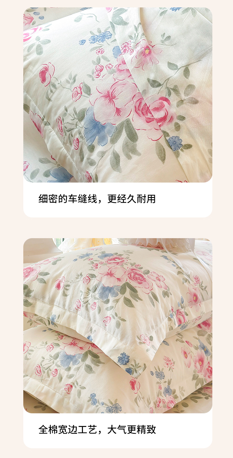 商品名称:姝辰 2025新款全棉纯棉印花双人长枕套纯棉加长单枕套 春日繁花
