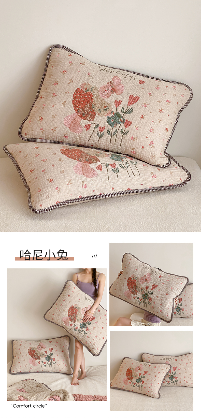 (总)麻依 2025新款安心棉枕巾四层全棉纱布枕头皮,布朗兔,彩虹点点,点点蝴蝶结-粉,点点蝴蝶结-米白,搞怪猫,韩系小樱桃,焦糖草莓,兰溪,漫语,木栖,天猫精灵,小波点,组合图