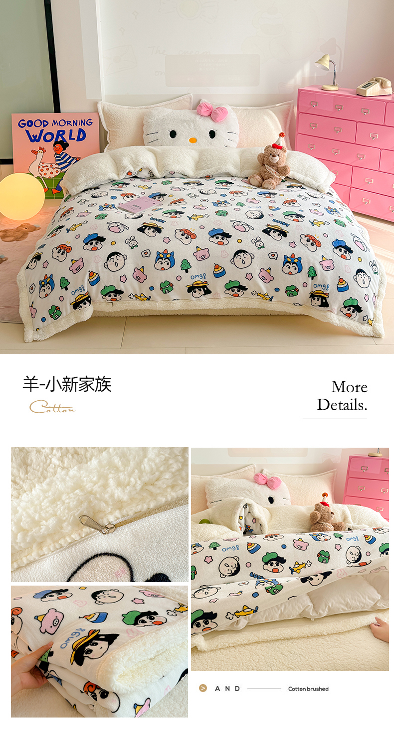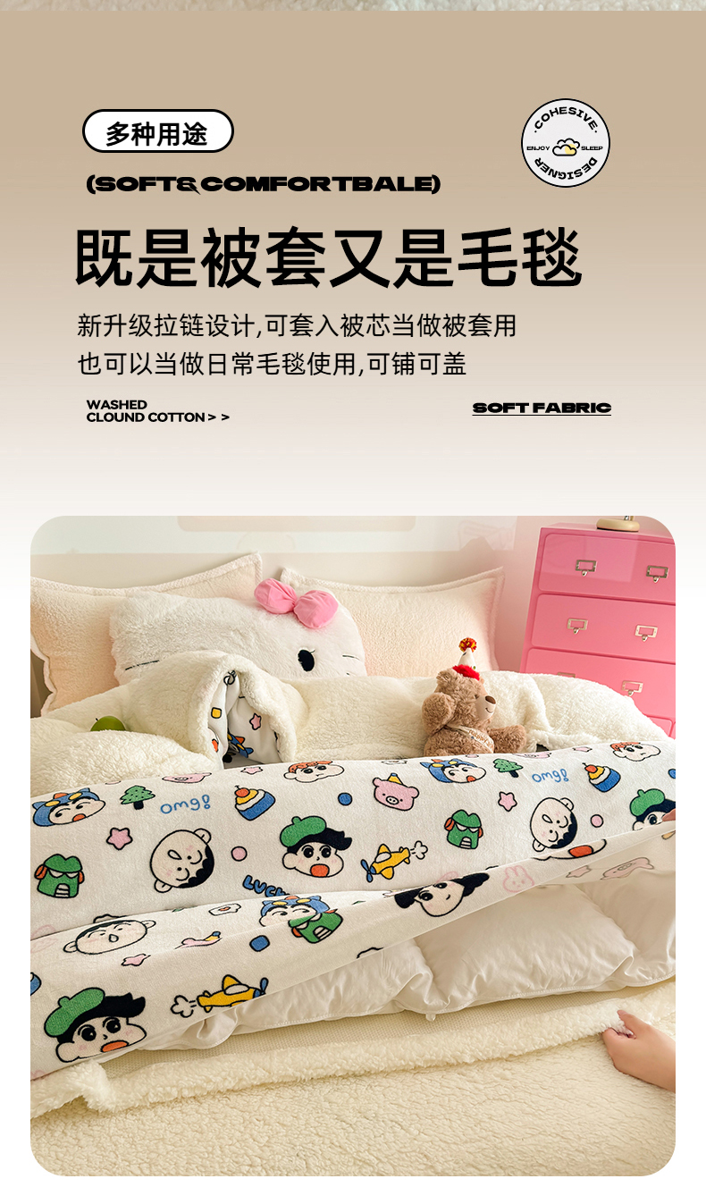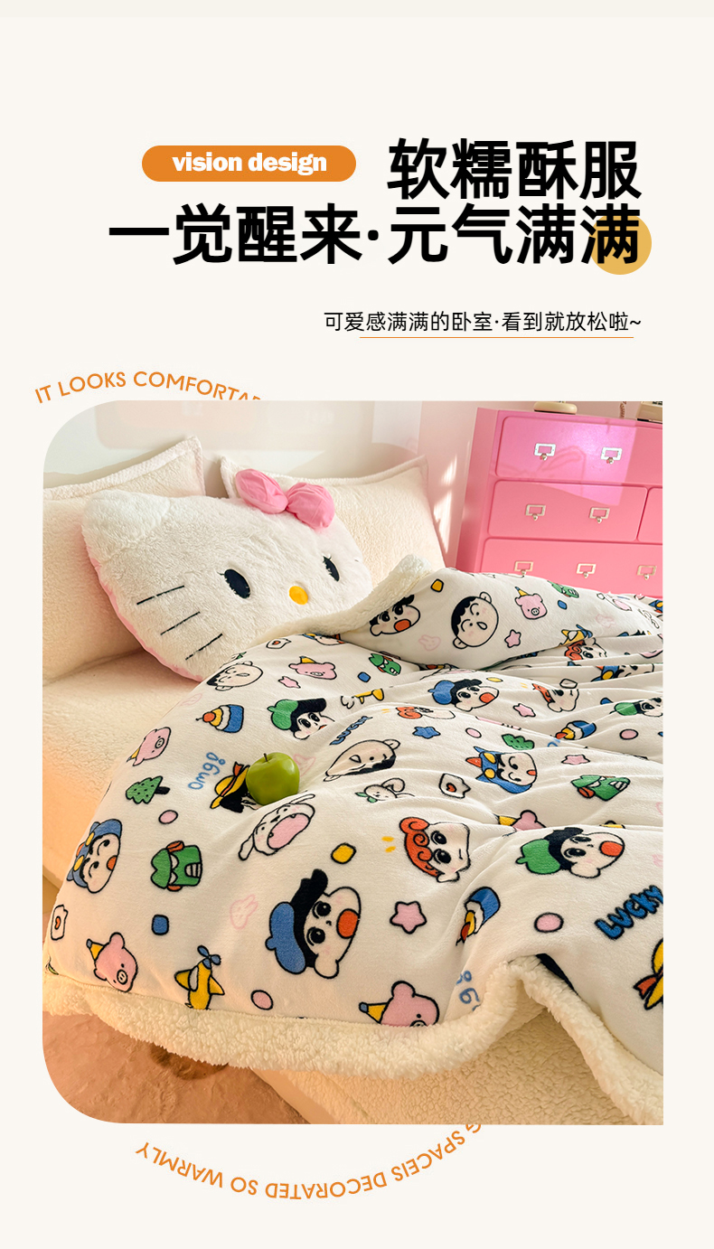 商品名称:艾特你 2025新款多功能羊羔绒牛奶绒单毛毯单被套 羊-小新家族
