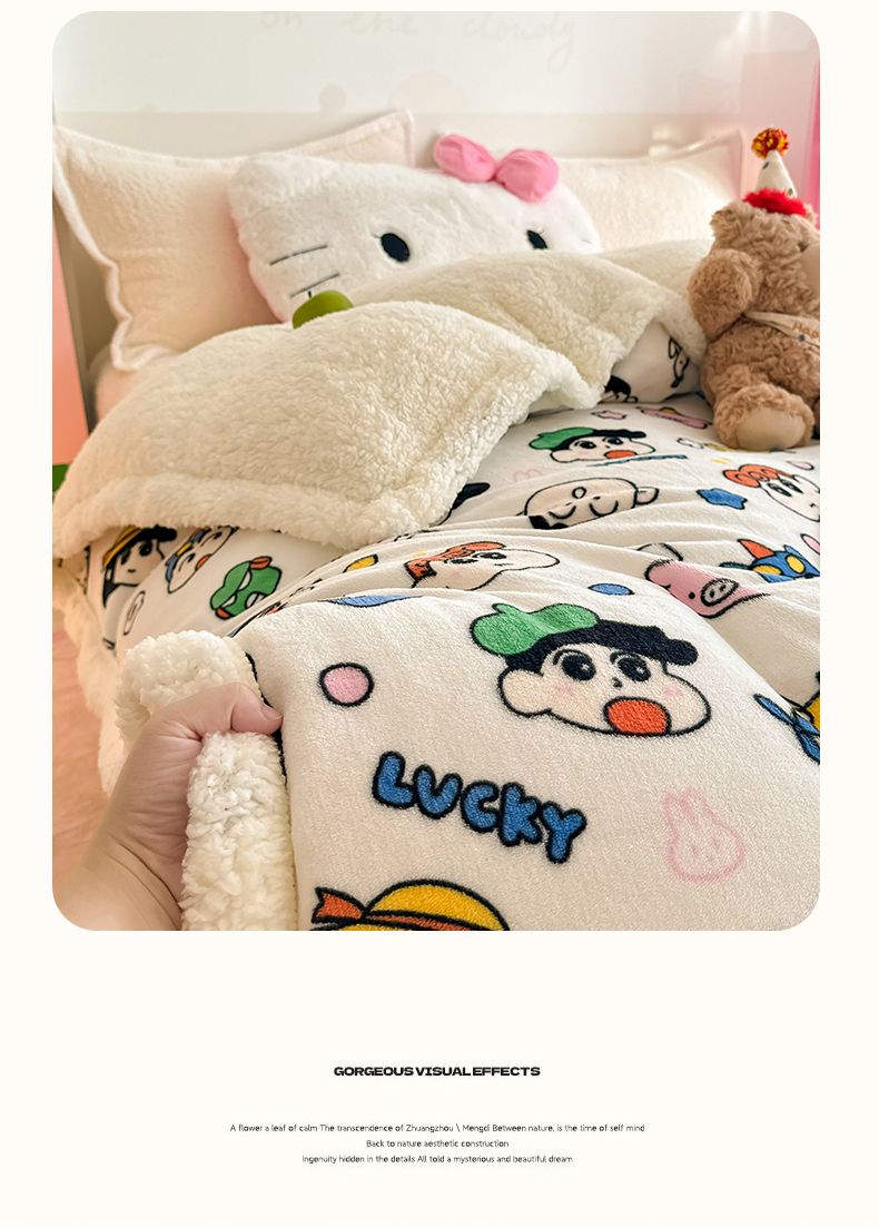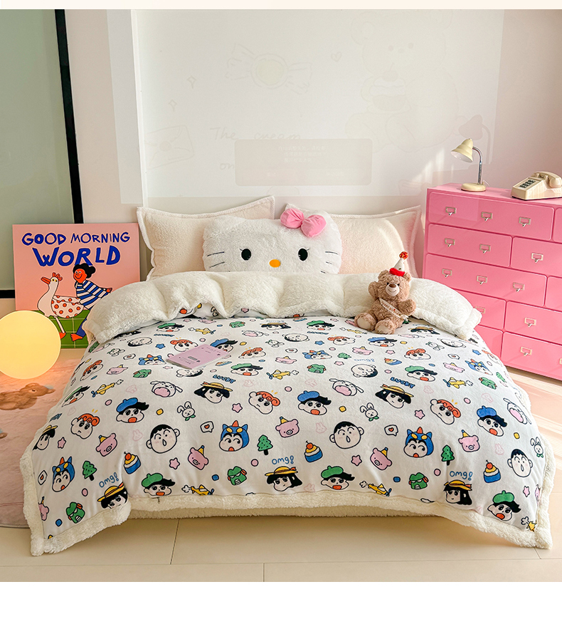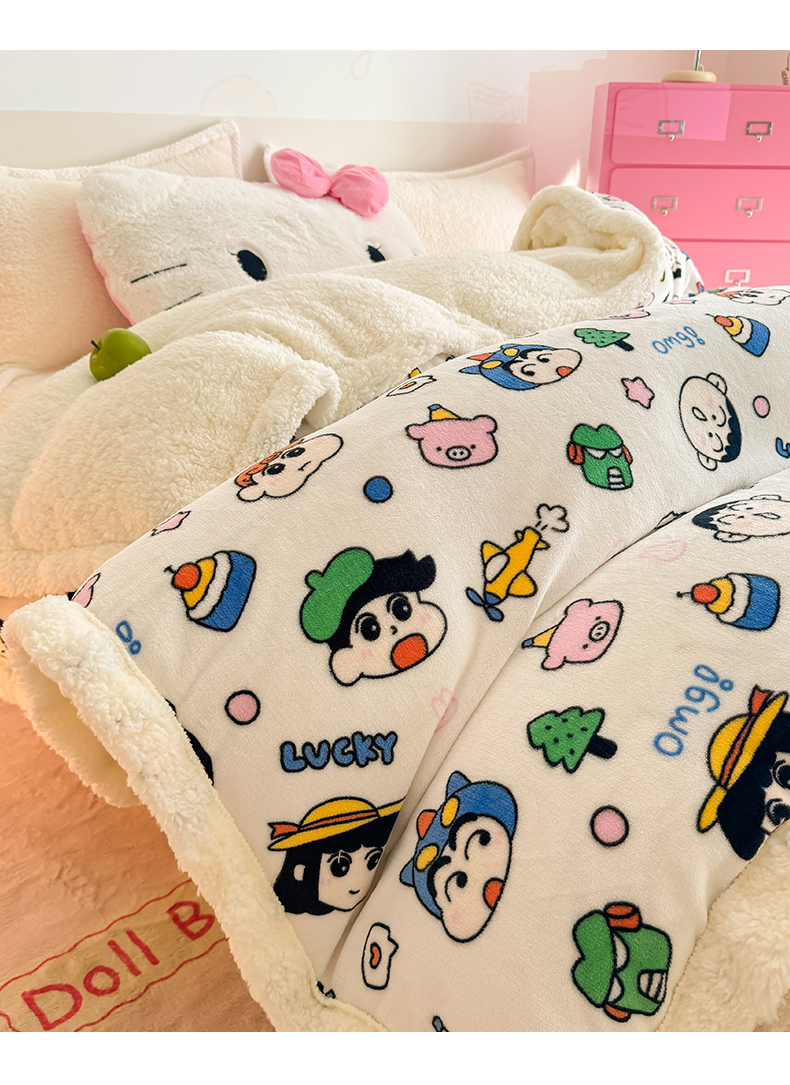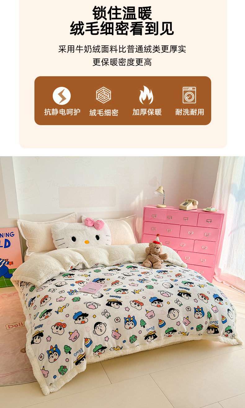 商品名称:艾特你 2025新款多功能羊羔绒牛奶绒单毛毯单被套 羊-小新家族
