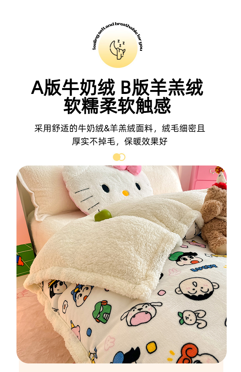 艾特你 2025新款多功能羊羔绒牛奶绒单毛毯单被套 羊-小新家族