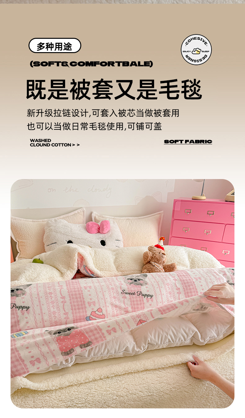 商品名称:艾特你 2025新款多功能羊羔绒牛奶绒单毛毯单被套 羊-欢喜