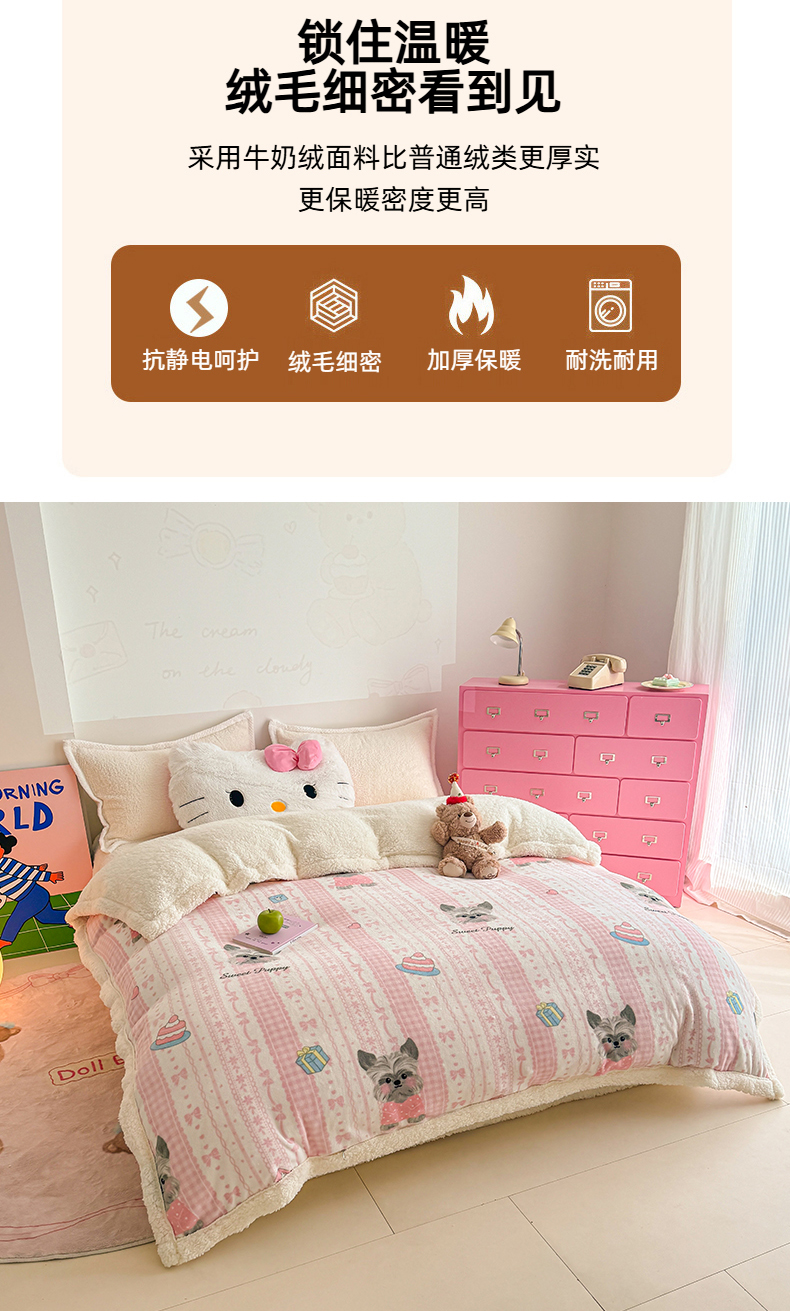 (总)艾特你 2025新款200g全工艺牛奶绒花边款四件套吊边床单,花边绒-摩卡蝴蝶结,花边绒-天蓝格,花边绒-彩色波点,花边绒-春意,花边绒-格子樱桃,花边绒-蝴蝶结,花边绒-简单格调,花边绒-快乐狮子,花边绒-奶茶蝴蝶结,花边绒-奶油波点,花边绒-浅粉格,花边绒-山茶花,花边绒-山野玫瑰,花边绒-圣诞星星,花边绒-甜美梦境,花边绒-条纹南瓜,花边绒-小黄花,花边绒-心意,花边绒-雪纳瑞,花边绒-野性