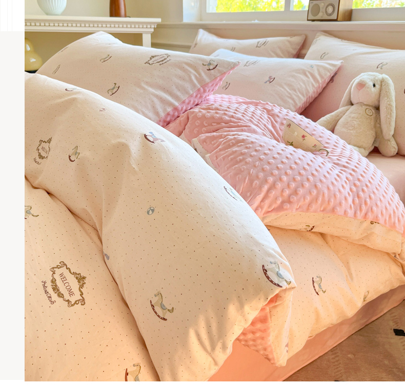 当前位置: 91家纺网 > 商品网购 > 床品套件 > 四件套 > 全棉普通四件套 > 麦伦家居 2025秋冬新品多功能床品全棉+豆豆绒四件套卡通小清新系列 乐园小马
