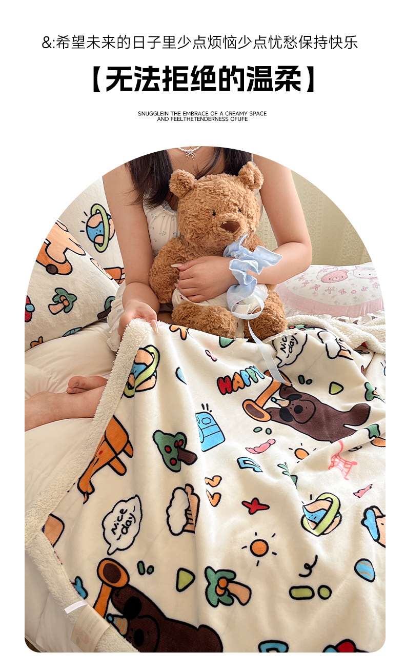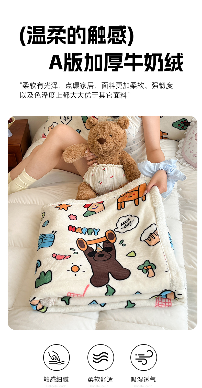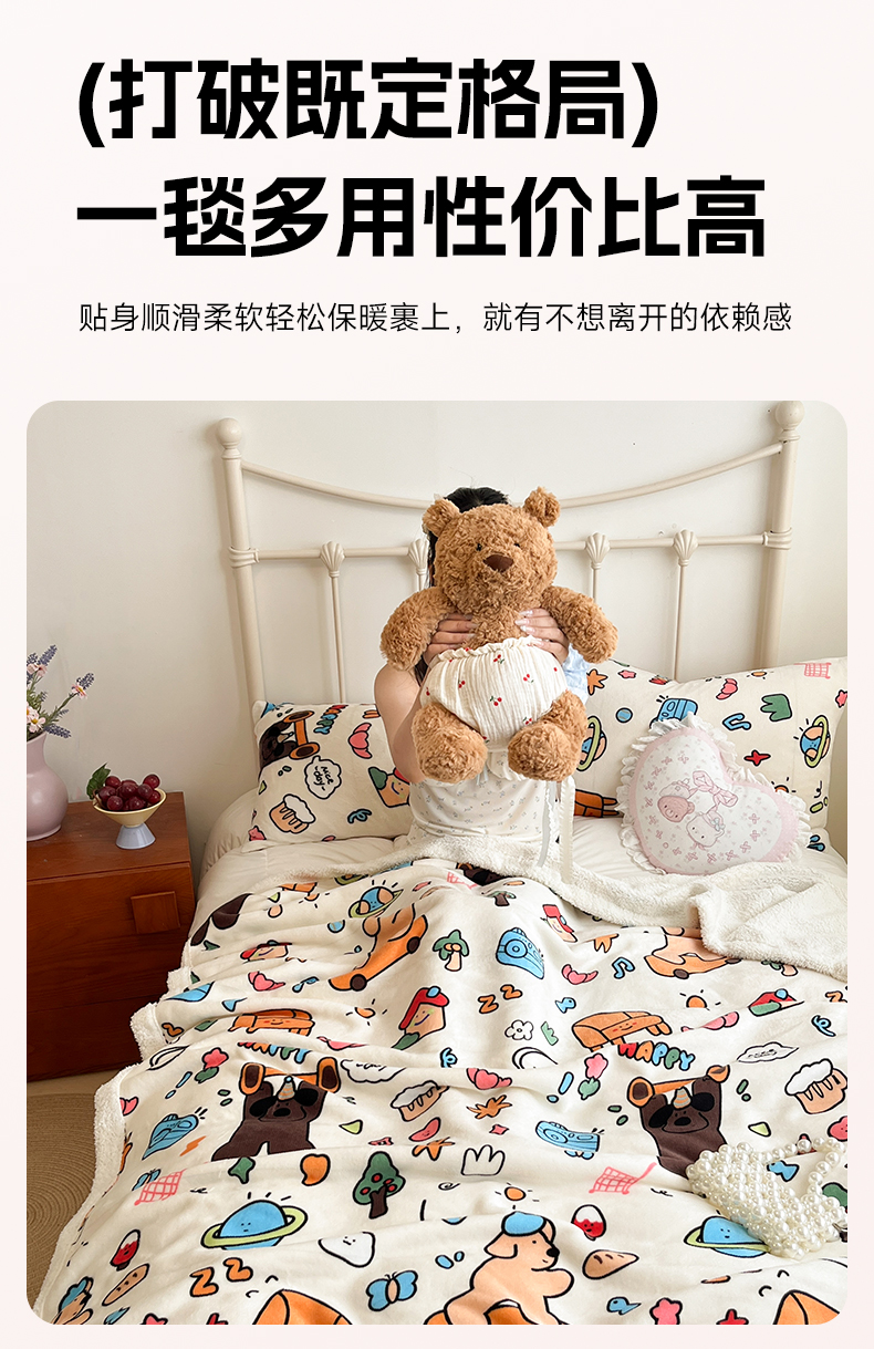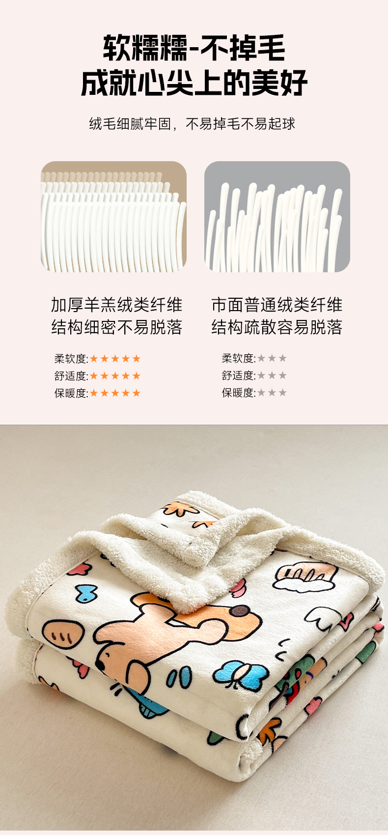 商品名称:红嘴企鹅 2025新款A类ins风卡通可爱加厚牛奶绒羊羔绒毛毯毯子办公室沙发儿童空调盖毯午休毯 大力