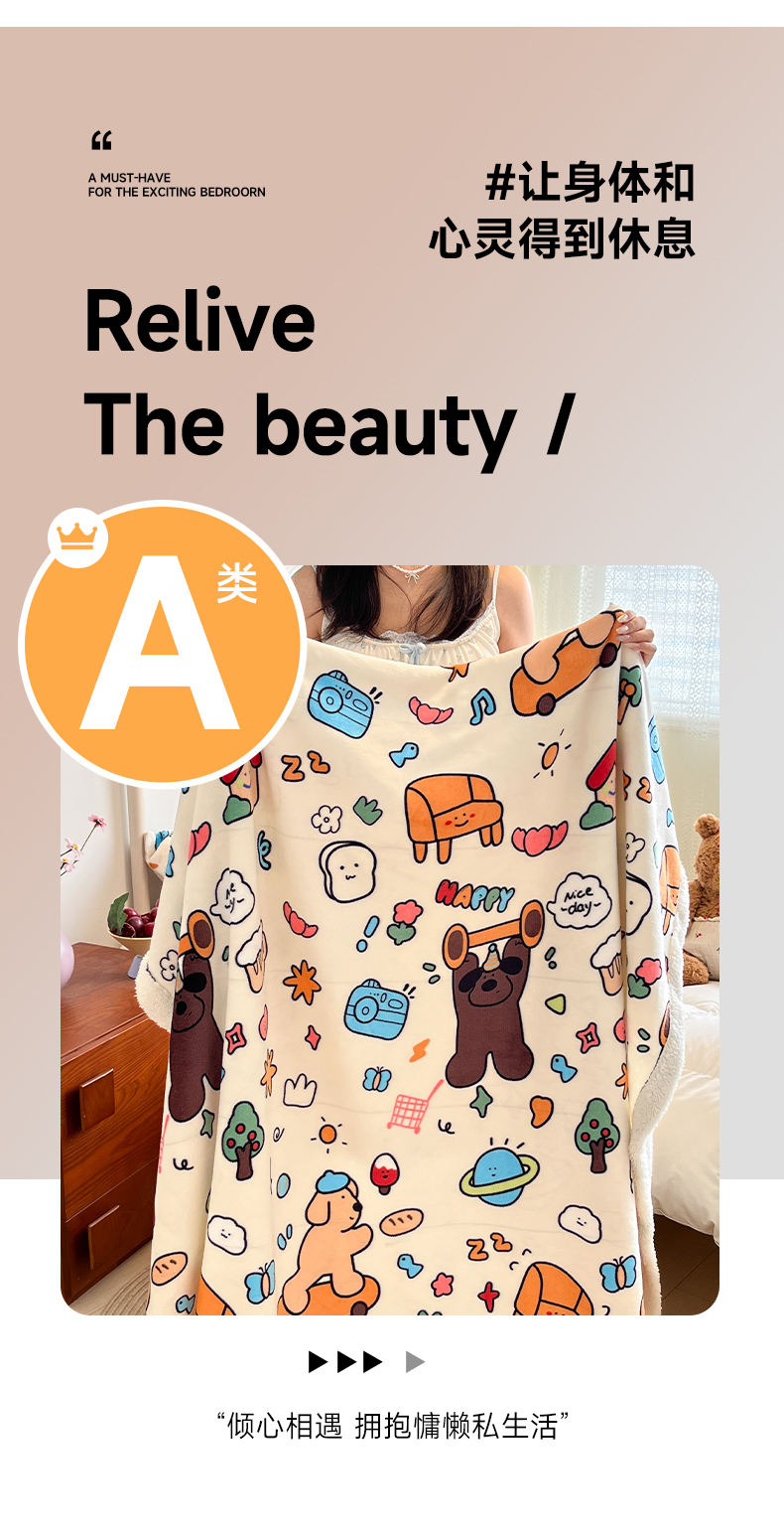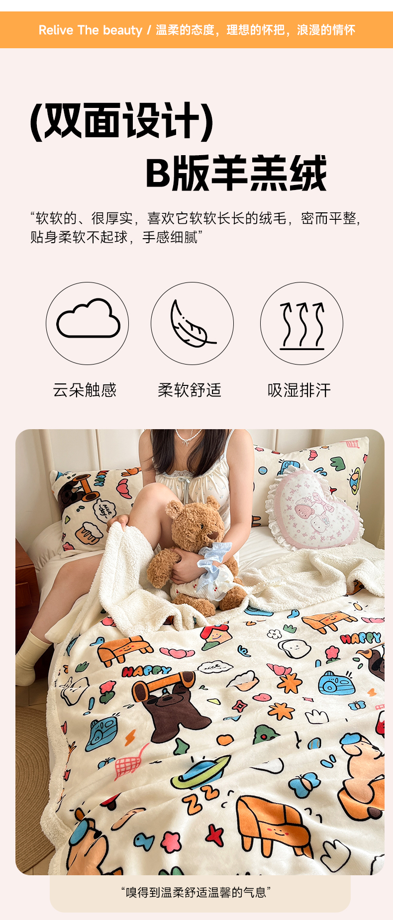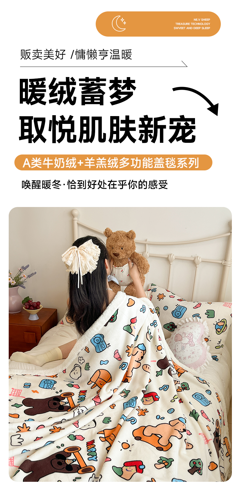 商品名称:红嘴企鹅 2025新款A类ins风卡通可爱加厚牛奶绒羊羔绒毛毯毯子办公室沙发儿童空调盖毯午休毯 大力