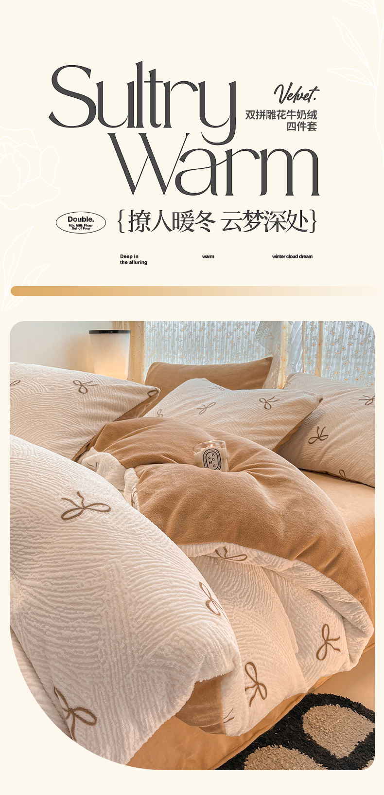 当前位置: 91家纺网 > 商品网购 > 床品套件 > 四件套 > 牛奶绒四件套 > 小叮当家纺仓储工厂店 2025新款高克重230克雕花牛奶绒四件套 梦幻芭蕾-奶白
