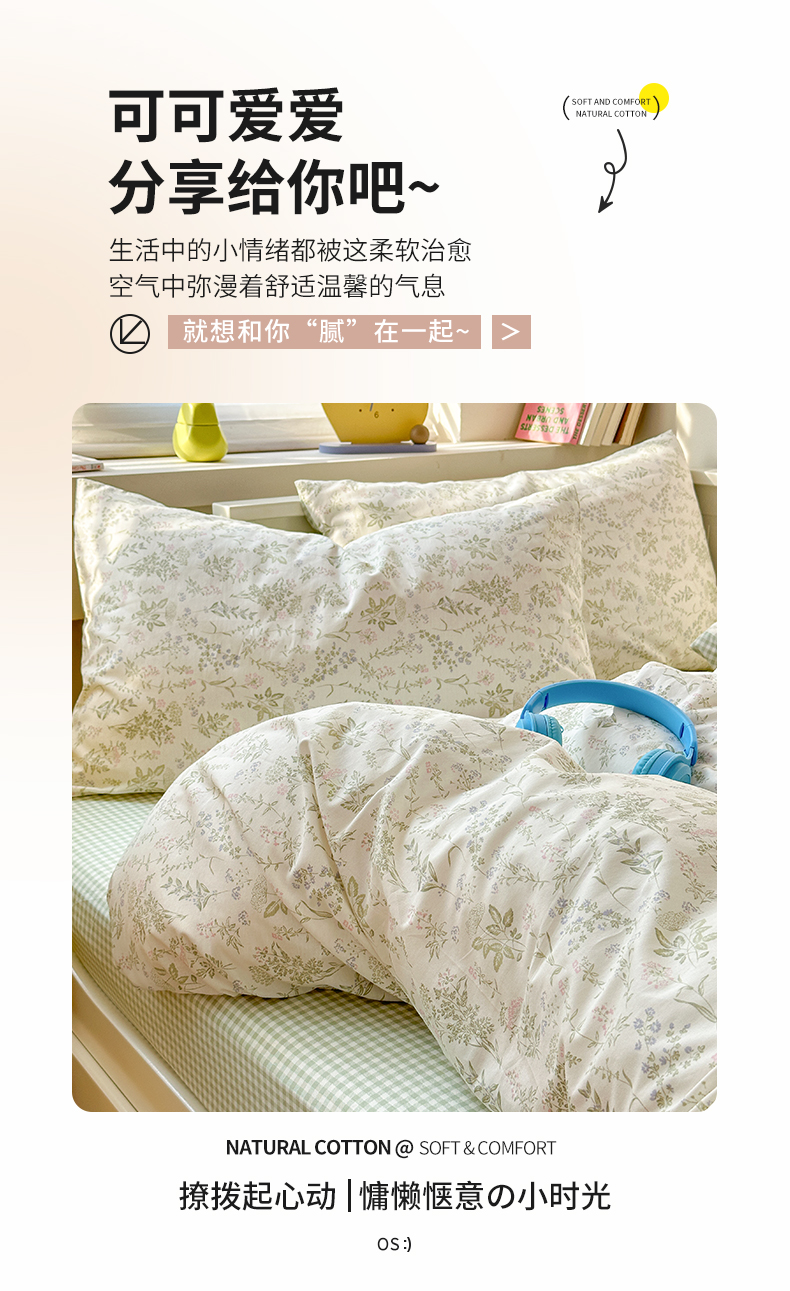 当前位置: 91家纺网 > 商品网购 > 床品套件 > 四件套 > 全棉普通四件套 > 小叮当家纺仓储工厂店 2025新款13372碎花系列全棉纯棉印花四件套 忘忧草