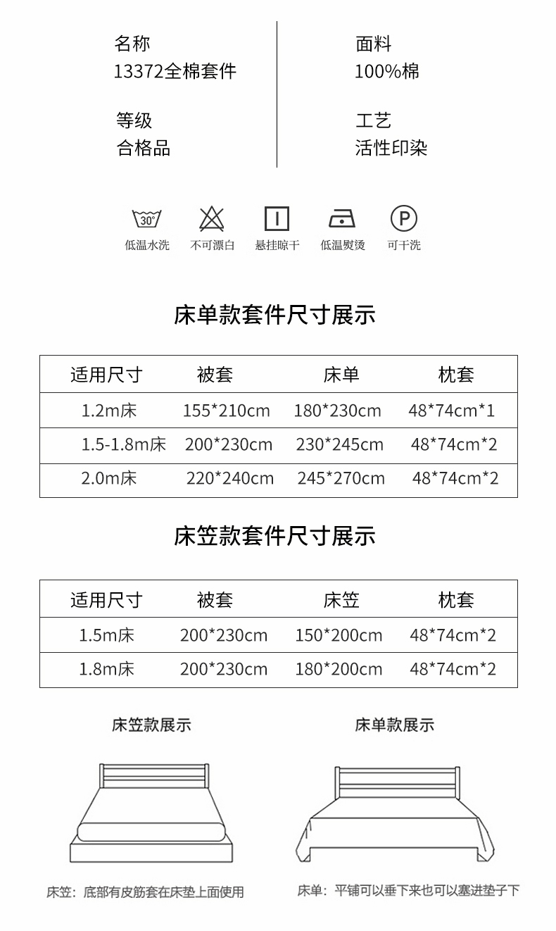 【床笠款】1.5四件套-被套200x230 | ¥135.00 |