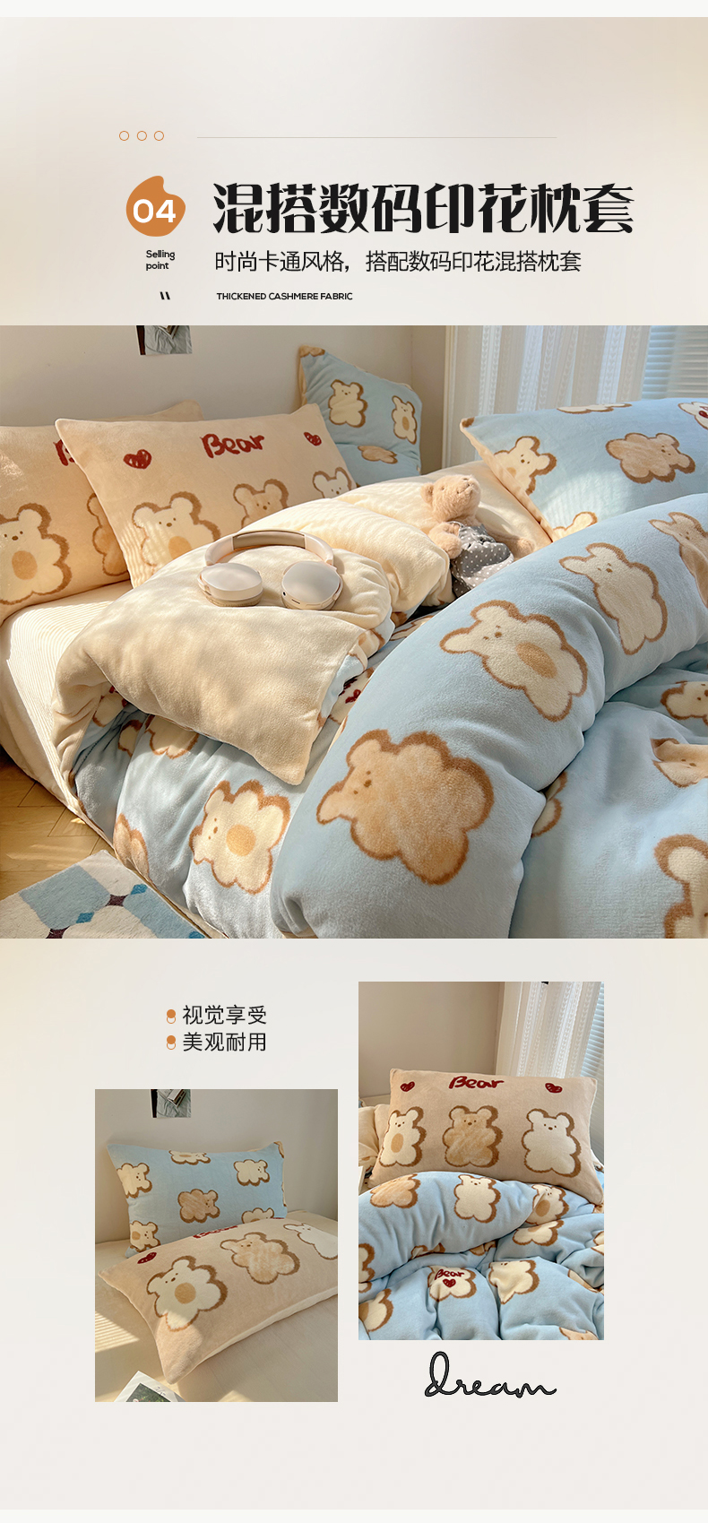 (总)桃子家居 2025新款A类高级仿生绵羊绒兔毛贴布绣刺绣工艺卡通少女加厚牛奶绒系列四件套,绵羊绒-冬日熊,绵羊绒-狗狗伙伴,绵羊绒-蓝条咖啡狗,绵羊绒-毛球猫咪,绵羊绒-圣诞小狗,绵羊绒-星星人