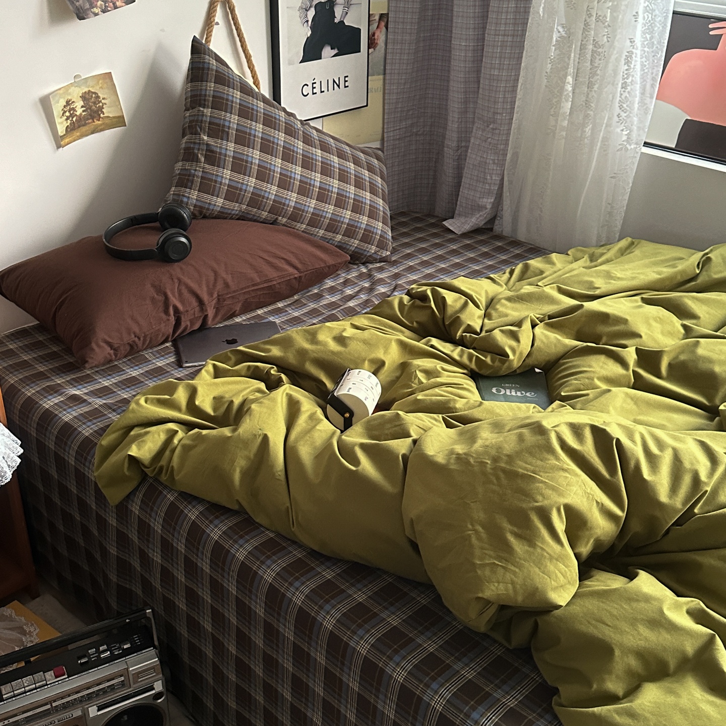 当前位置: 91家纺网 > 商品网购 > 床品套件 > 四件套 > 水洗棉四件套 > (总)对白 2025新款全棉色织水洗棉四件套-抹茶格纹【提供买家秀】