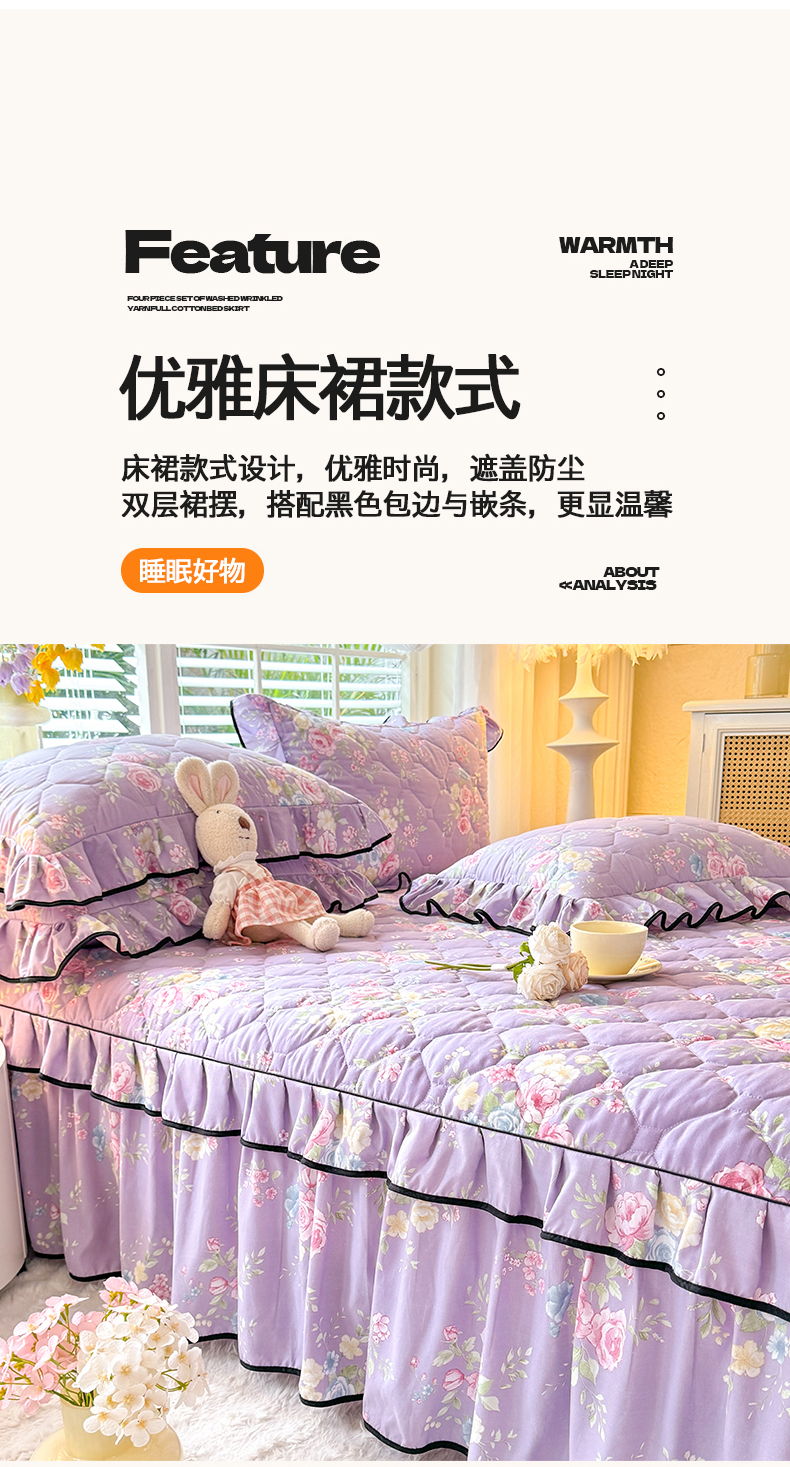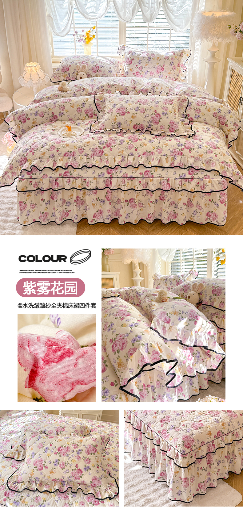 (总)优家居 2025新品水洗棉全夹棉床裙四件套韩版糯糯棉水洗皱皱纱床罩花边被套枕套直播爆款,莓好时光,秘园絮语,花花田园,爱心蝴蝶结,巴宝格-咖,豹纹-咖,蝶舞芳华,繁花似锦,粉色猫猫,粉雾结语,陌上花开,紫雾花园