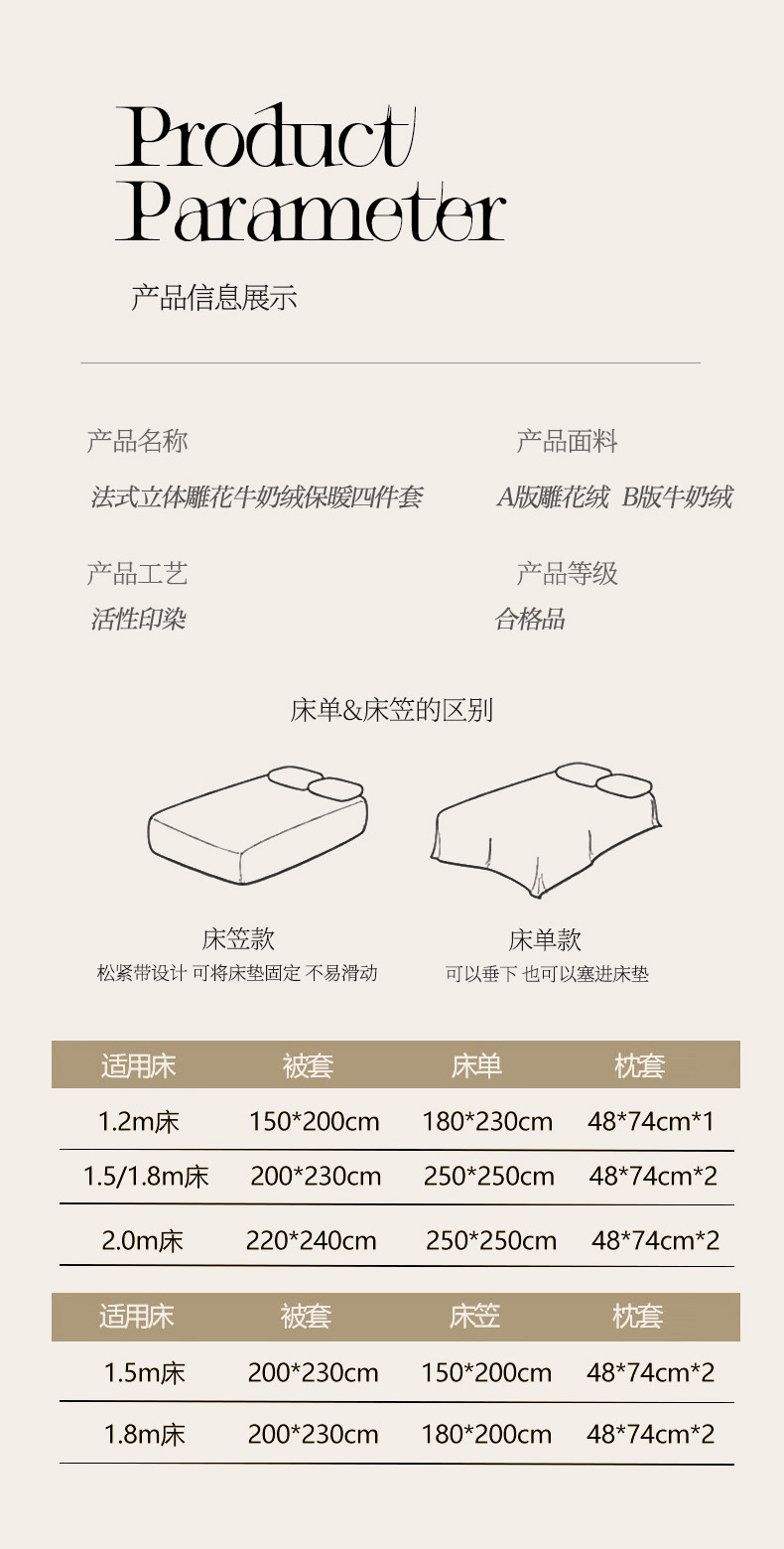 【床笠款】1.5四件套-被套200x230 | ¥125.00 |