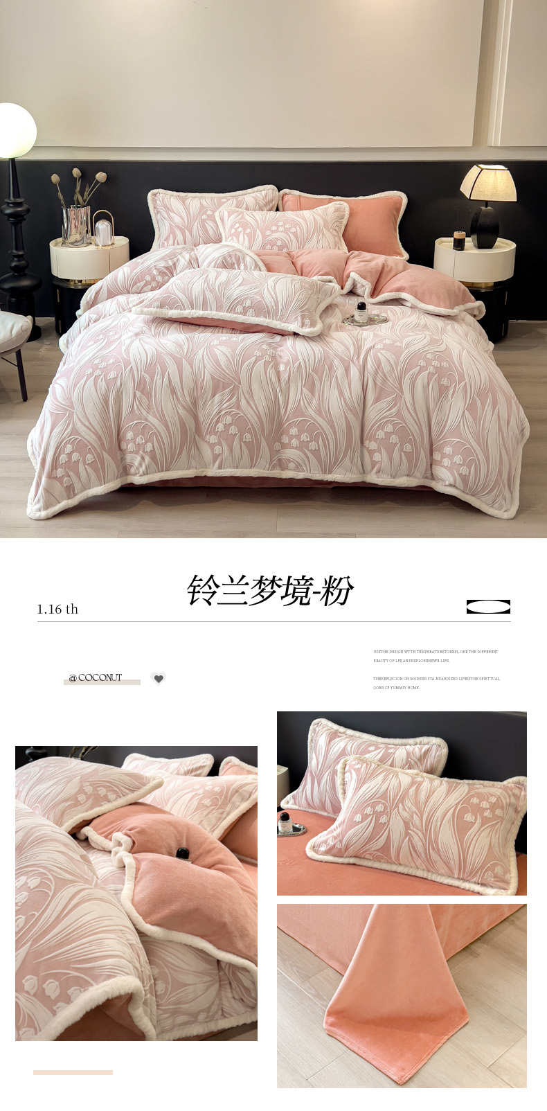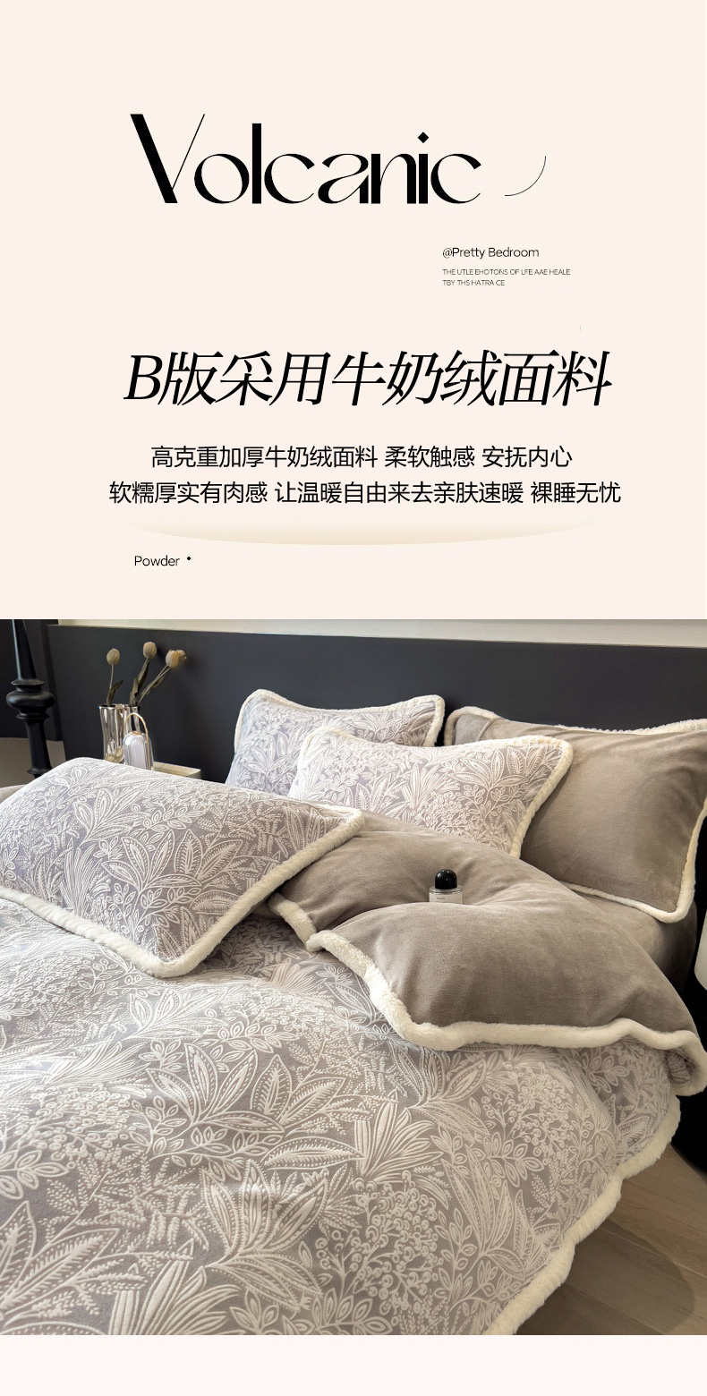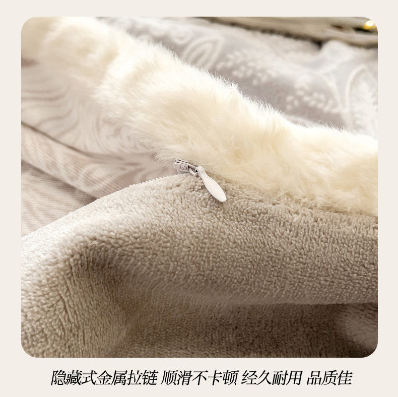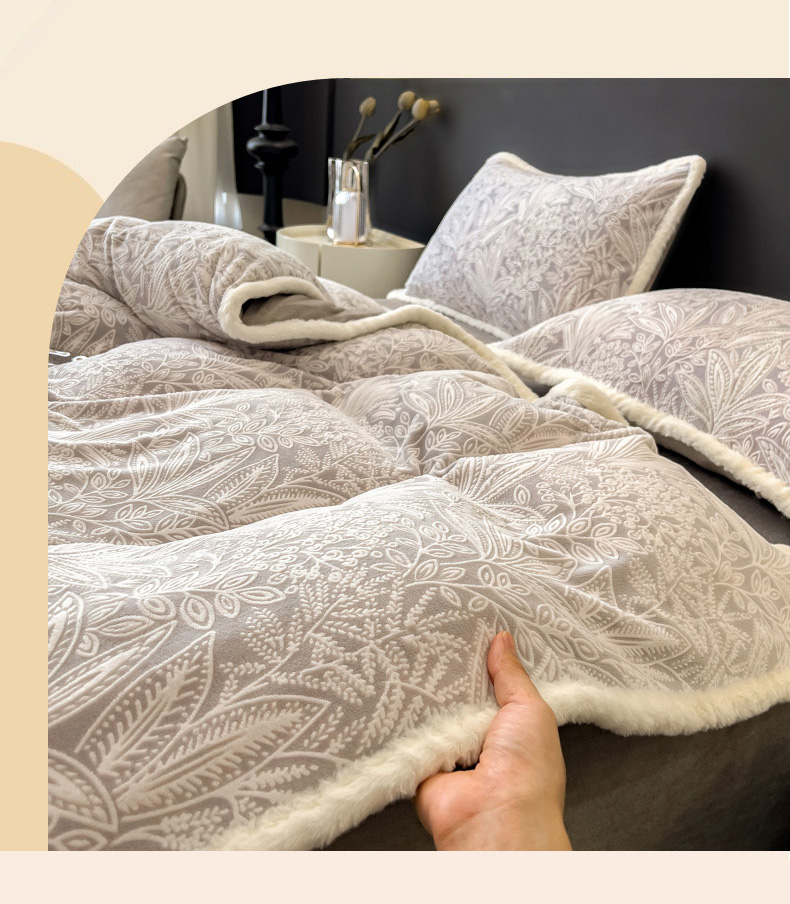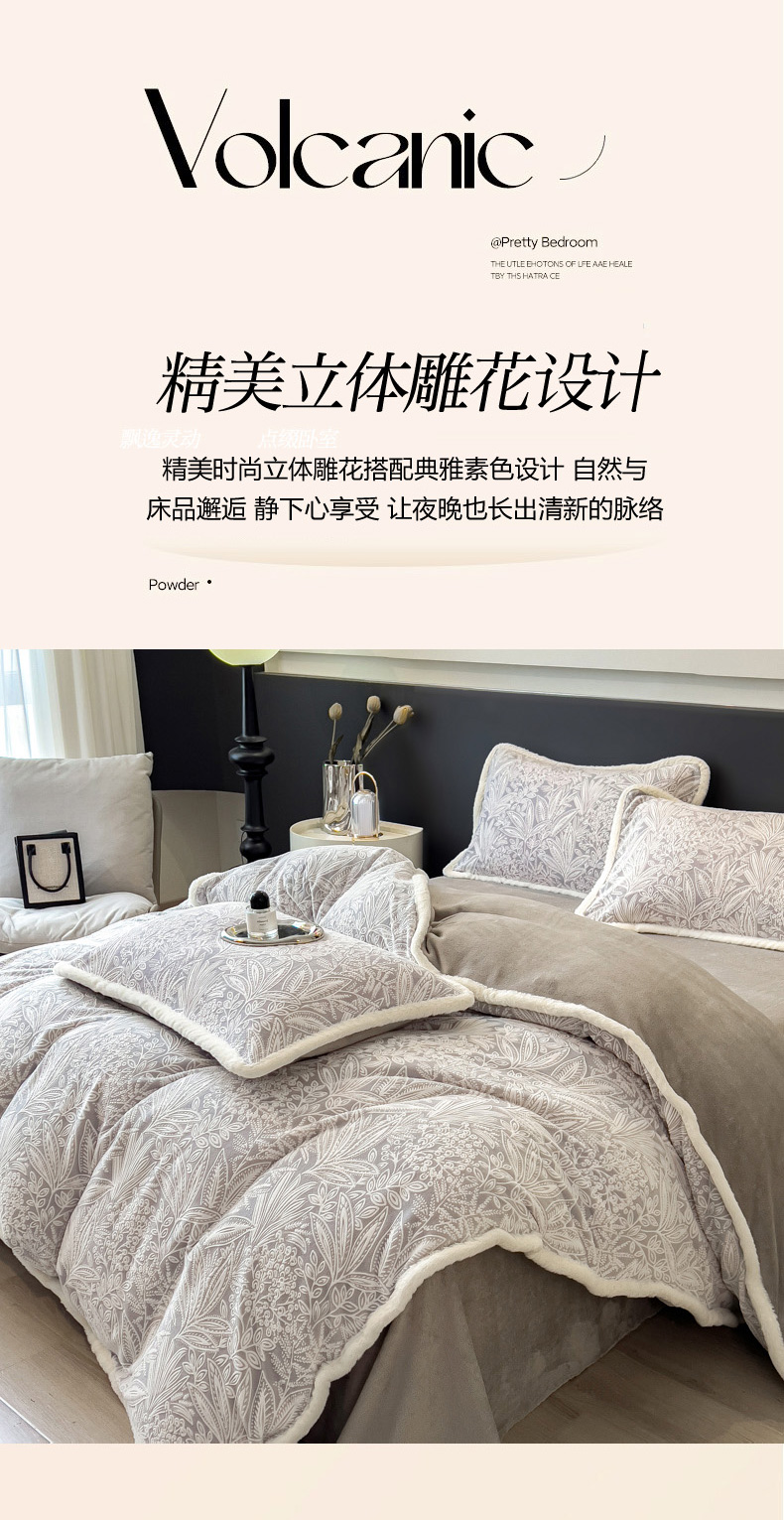 当前位置: 91家纺网 > 商品网购 > 床品套件 > 四件套 > 兔毛绒四件套 > 印季家纺 2025新款法式立体雕花绒兔毛包边四件套 山茶庄园-灰