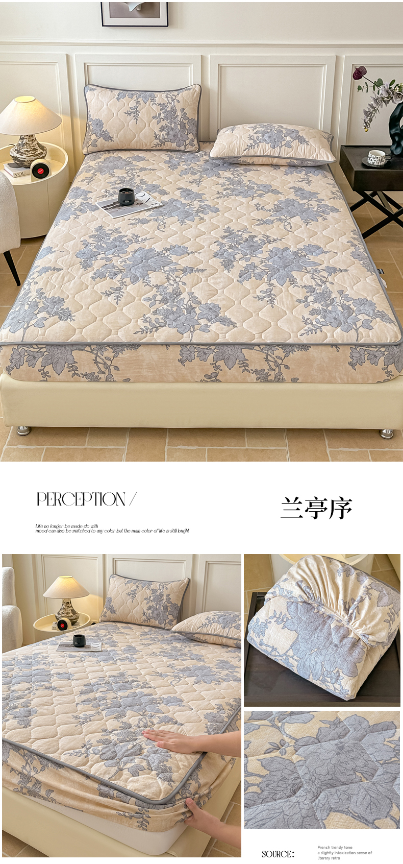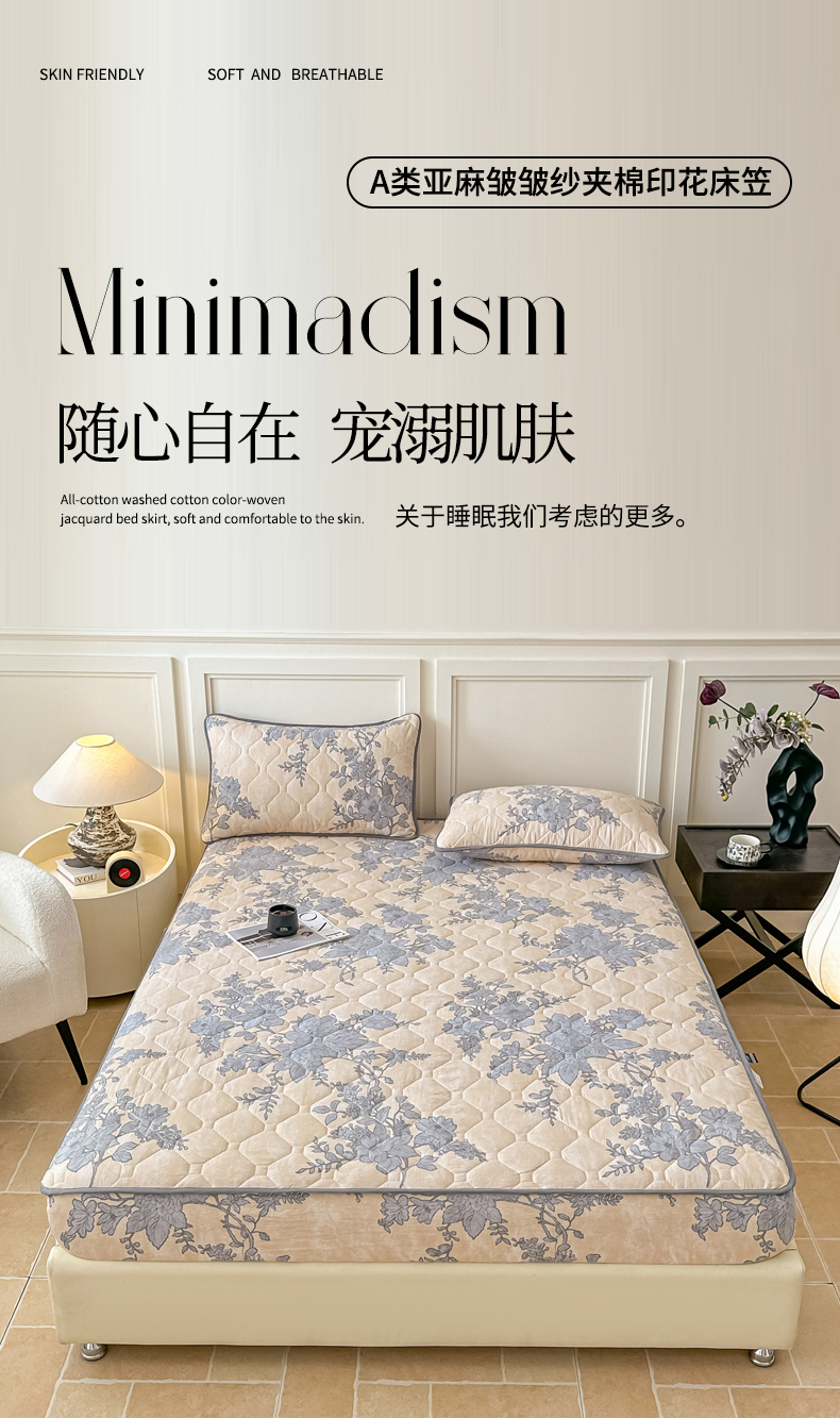 • 91家纺网 家纺一手货源 找家纺 梦嘉居 2025新款加厚亚麻皱皱纱加棉床笠单品床笠枕套单件单床笠 兰亭序