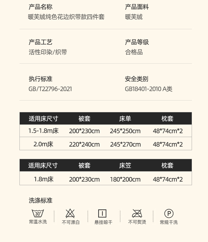1.8m床笠款四件套 | ¥195.00 |