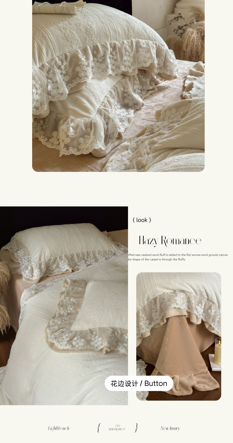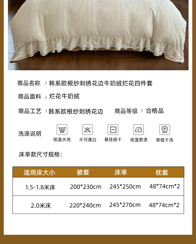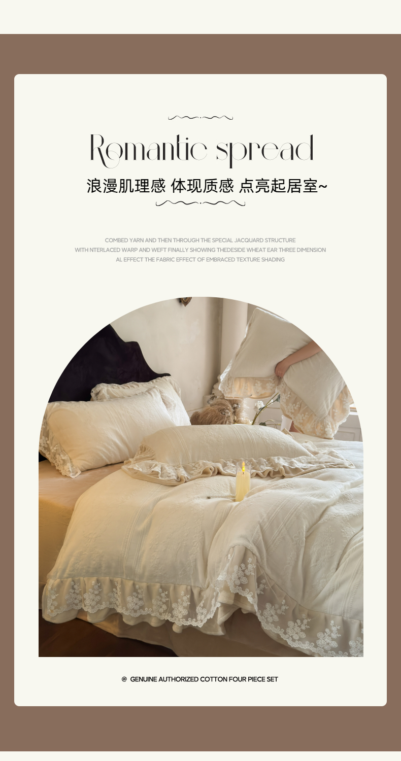 商品名称:纯优家纺 2025新款韩系欧根纱刺绣花边牛奶绒烂花四件套-玛德琳 玛德琳-珍珠贝