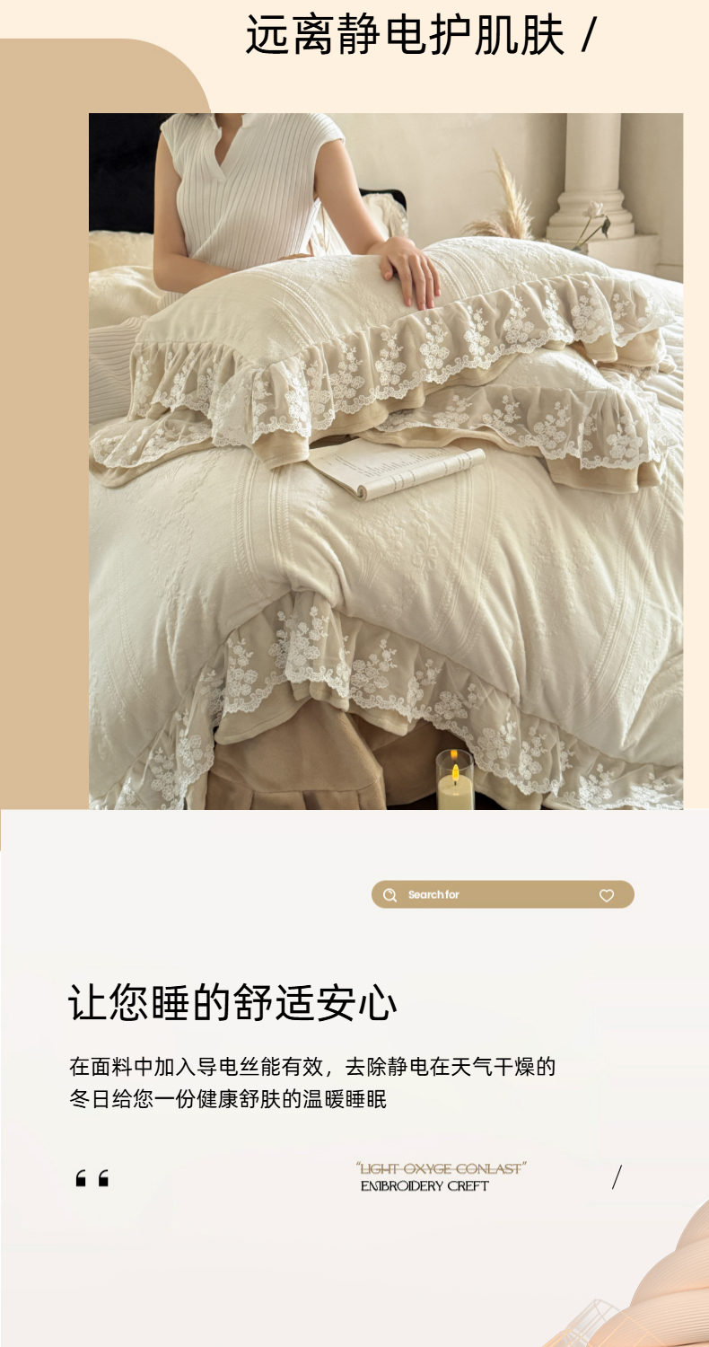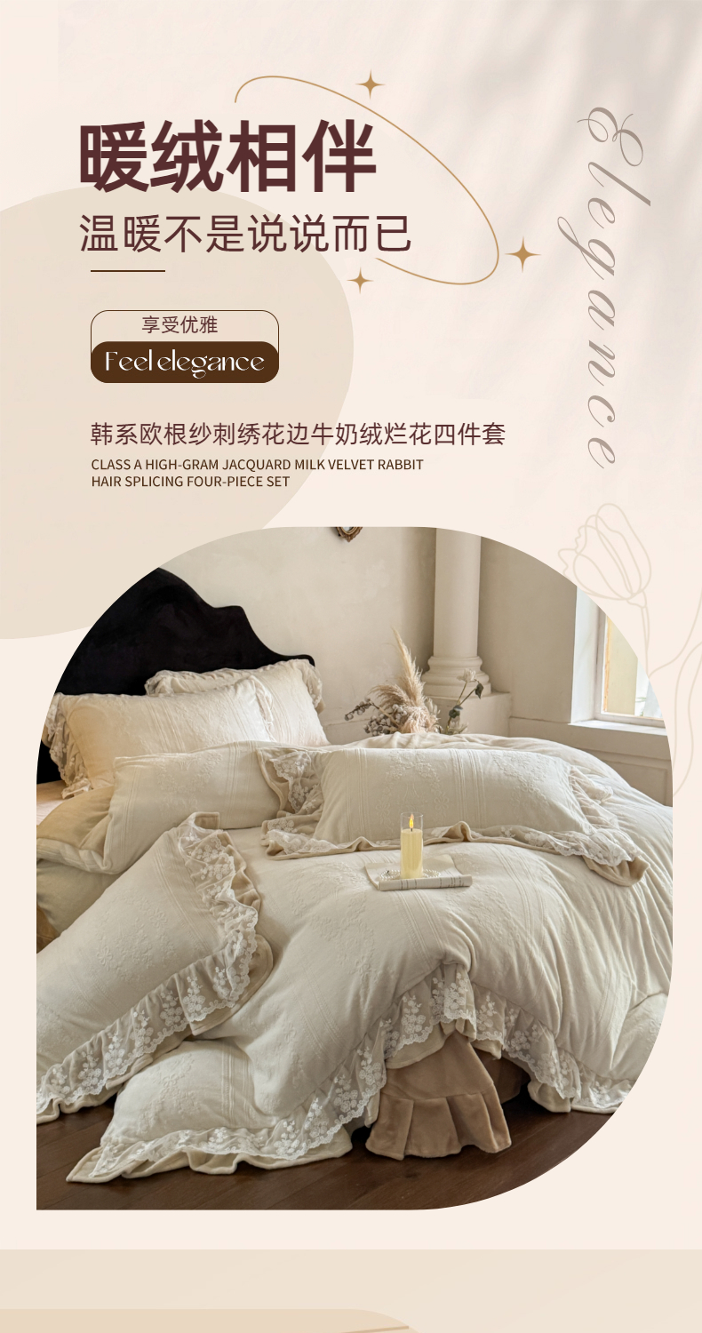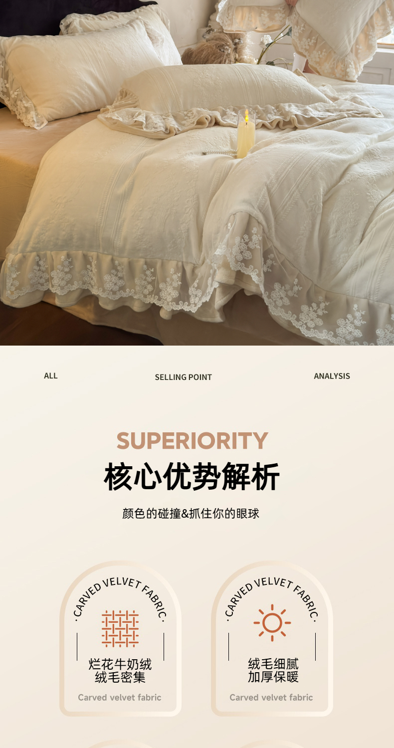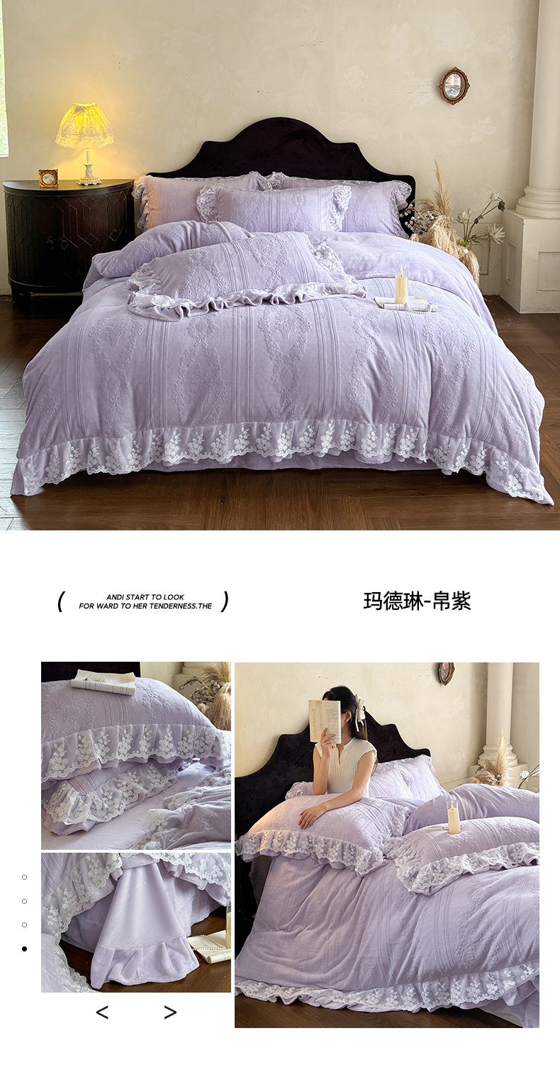 (总)纯优家纺 2025新款秋冬轻法式花边款雕花牛奶绒四件套-绮梦,绮梦-蜜桃粉,绮梦-米黄,绮梦-芋泥紫